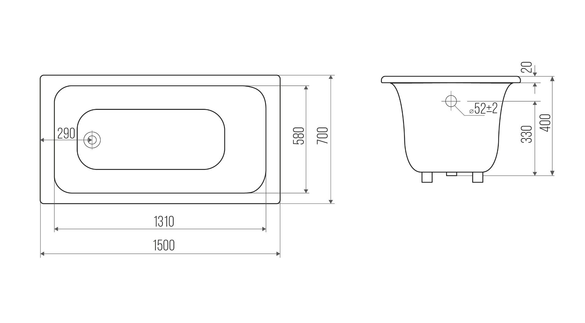 Чугунная ванна Goldman Classic 000000312 150×70 с ножками