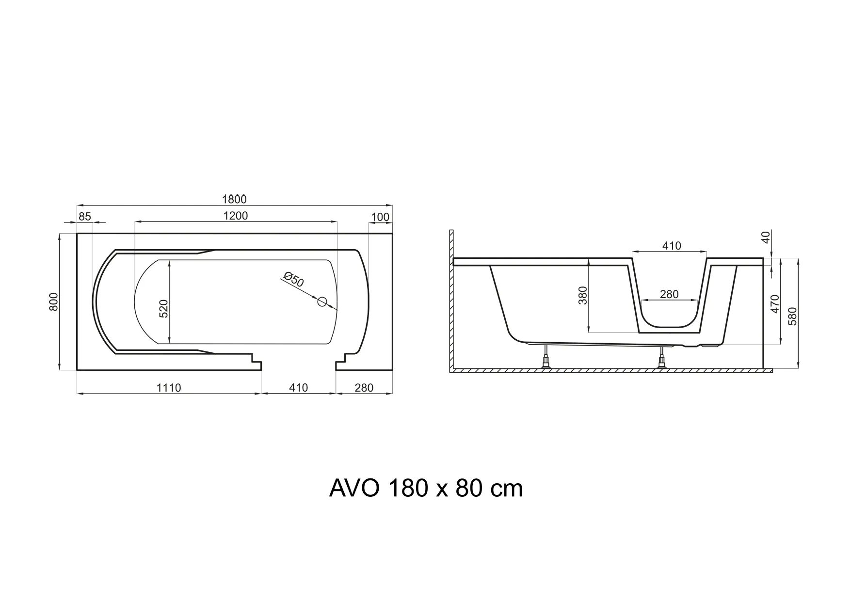 Акриловая ванна Polimat Avo 00014 180×80 пристенная без перелива белая