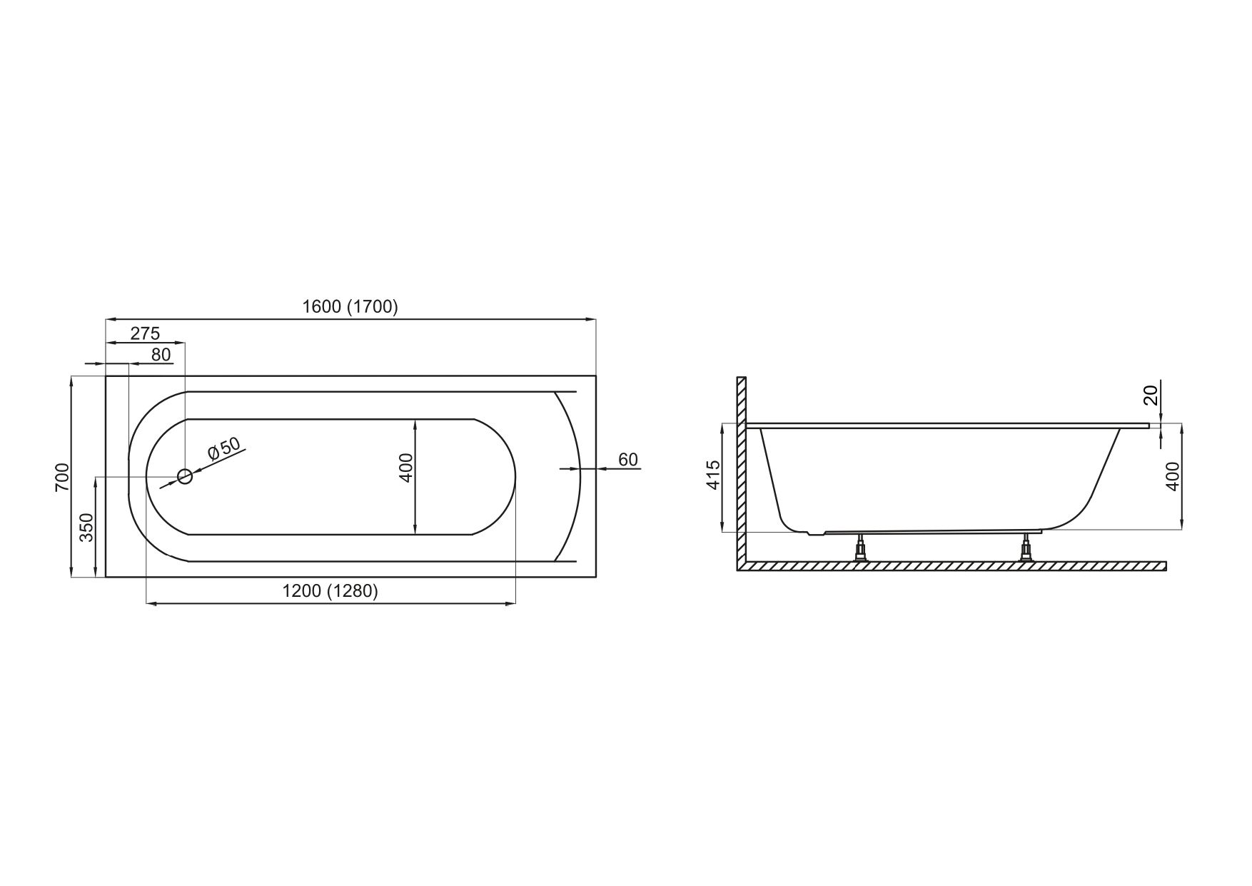 Акриловая ванна Polimat Classic Slim 00290 160×70 с ножками