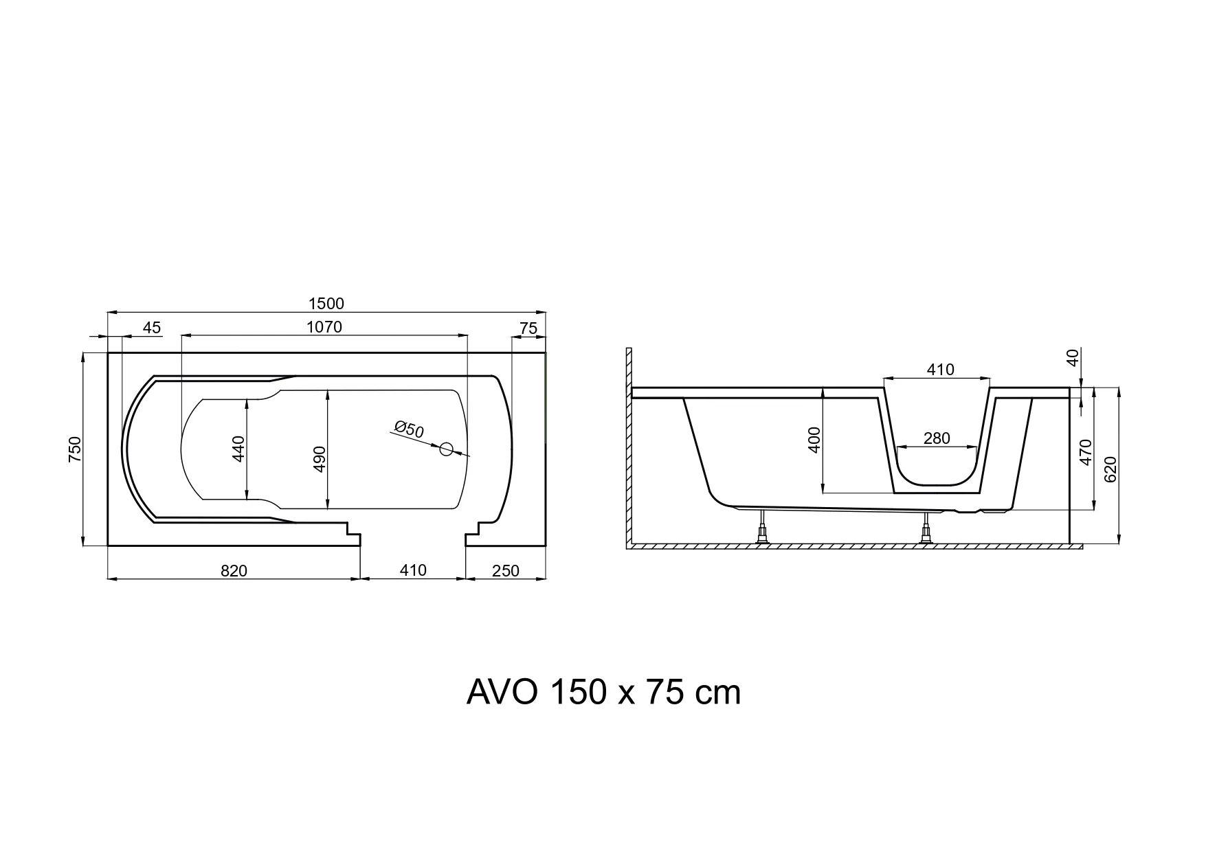 Акриловая ванна Polimat Avo 00483 150×75 пристенная с переливом белая