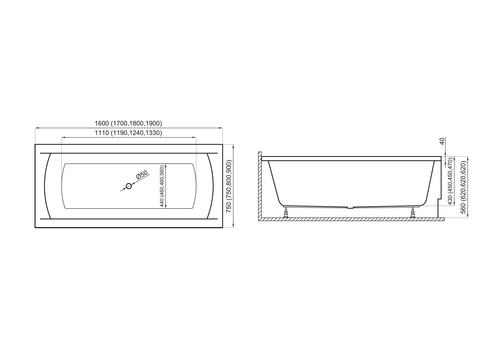 Акриловая ванна Polimat Ines 00720 180×80 с ножками
