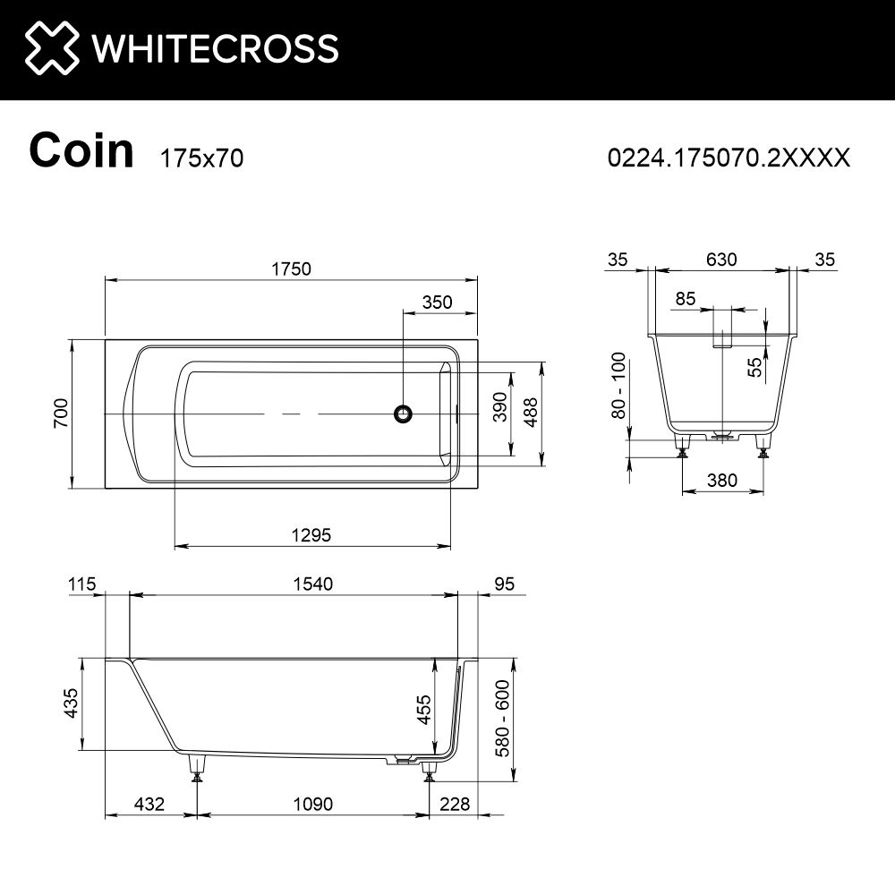 Позвольте себе роскошь ежедневного спа-дома — выберите ванну WHITECROSS Coin 175x70 и превратите свою ванную в оазис спокойствия и стиля!