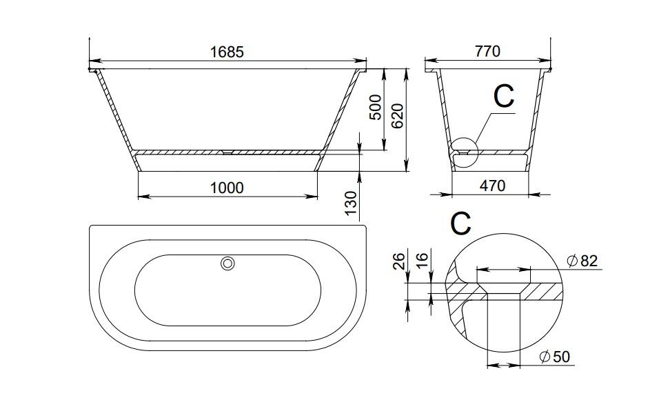 | Расположение перелива | По центру |