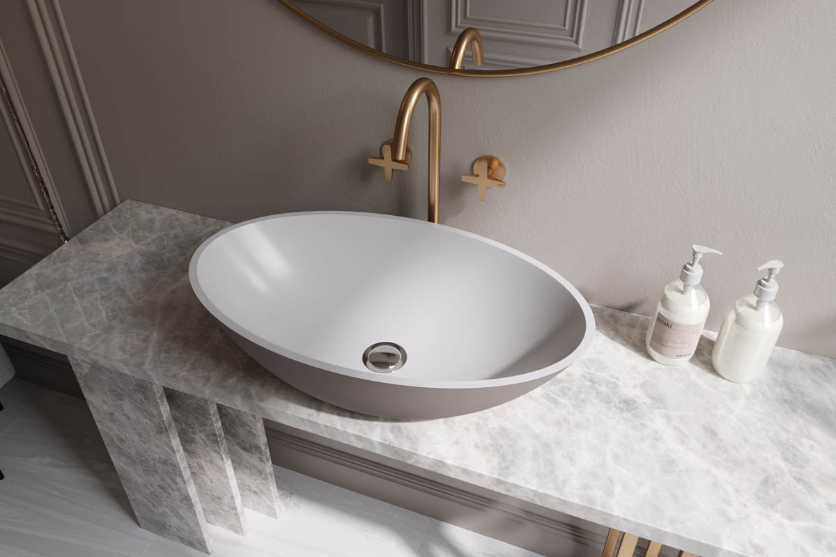 Установка на столешницу создает аккуратный и функциональный дизайн, подчеркивая плавные линии и элегантные формы изделия. Благодаря своей овальной форме Holbi Dione придает пространству мягкость и утонченность, делая вашу ванную комнату уютной и современной.