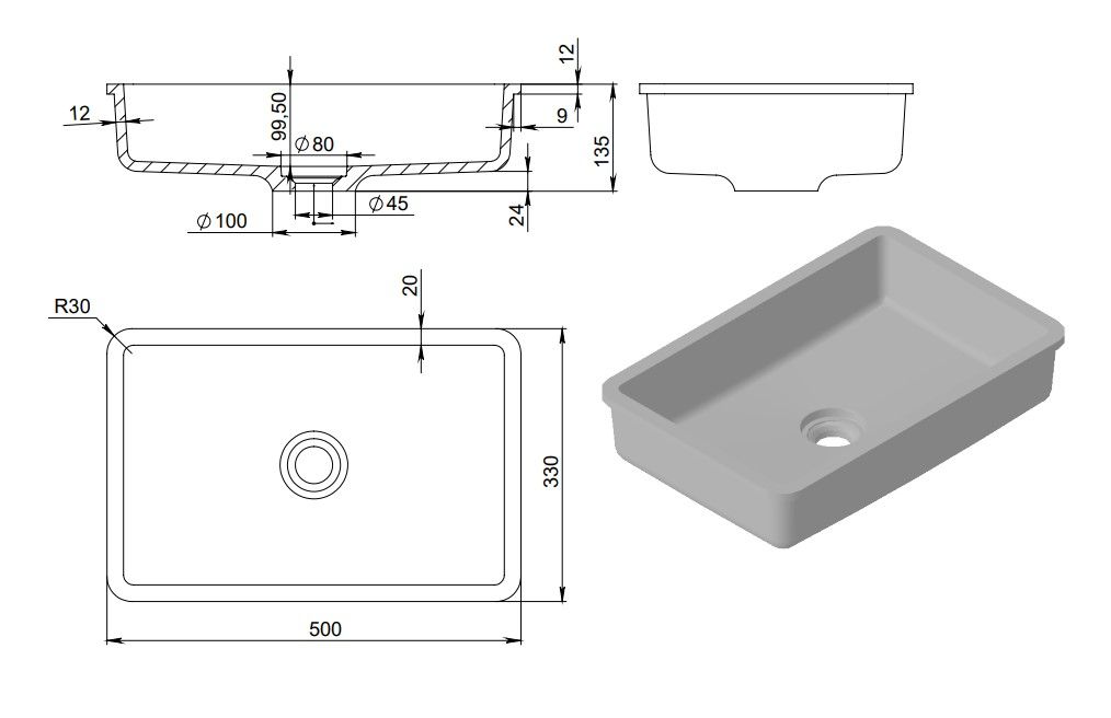 | Вид раковины | Встраиваемая снизу |