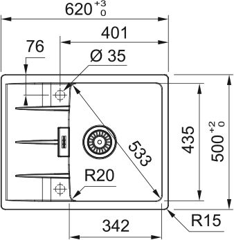 Кухонная мойка Franke CNG 611/211-62 имеет диаметр сливного отверстия 3,5". Вентиль-автомат в комплекте.