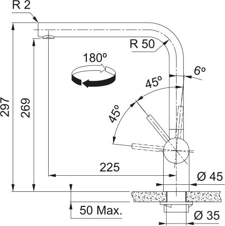 | Длина излива, см | 22.5 |
