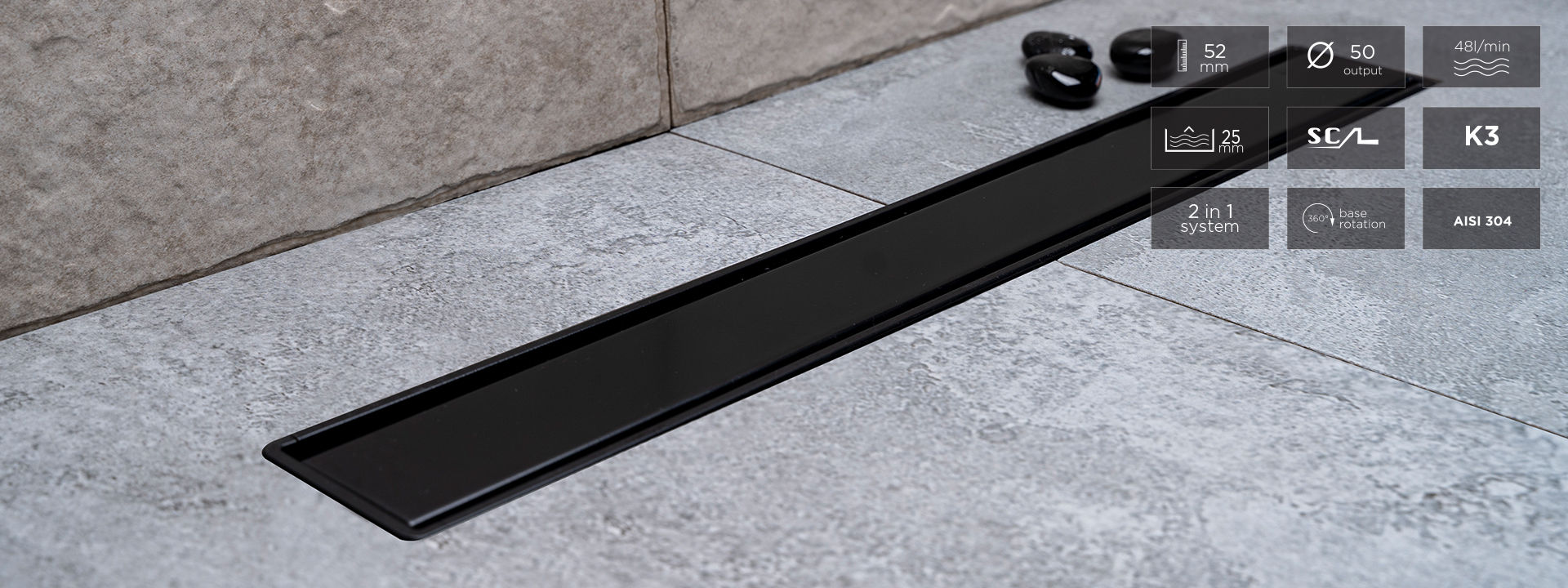 Душевой лоток Pestan Confluo Primo Compact Line 650 matte black 13702524 линейный 2в1