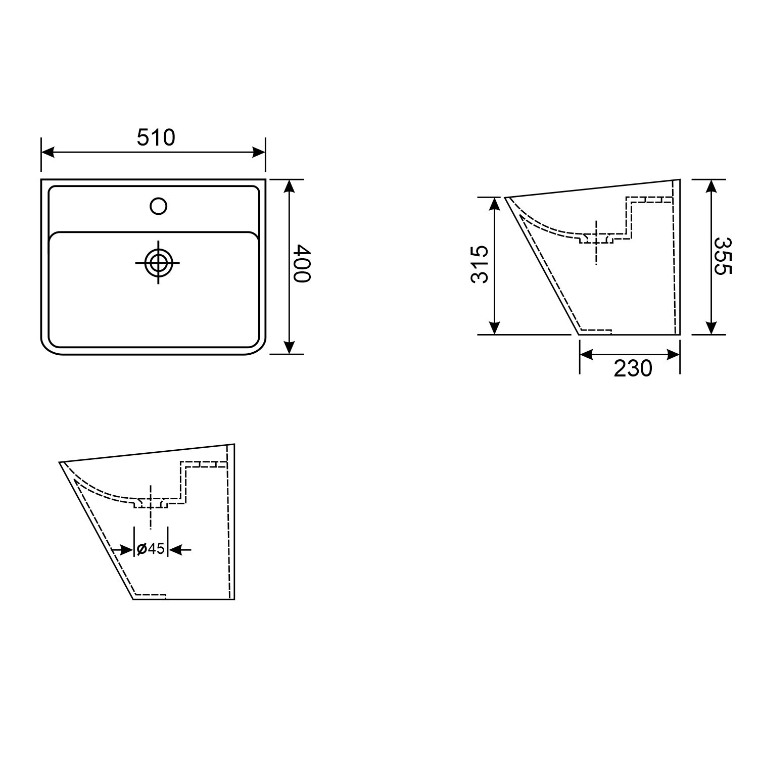| Вид раковины | Подвесная |