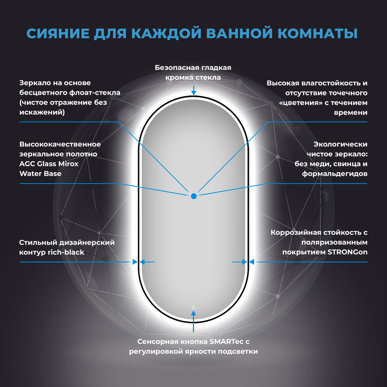 Зеркало Wellsee 7 Rays' Spectrum 172202050 с фронтальной LED-подсветкой (60×120 см)