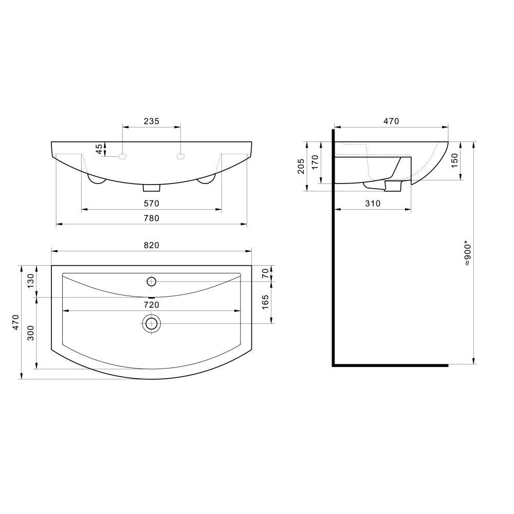 Раковина Santek Балтика 80 см / 1.WH50.1.524