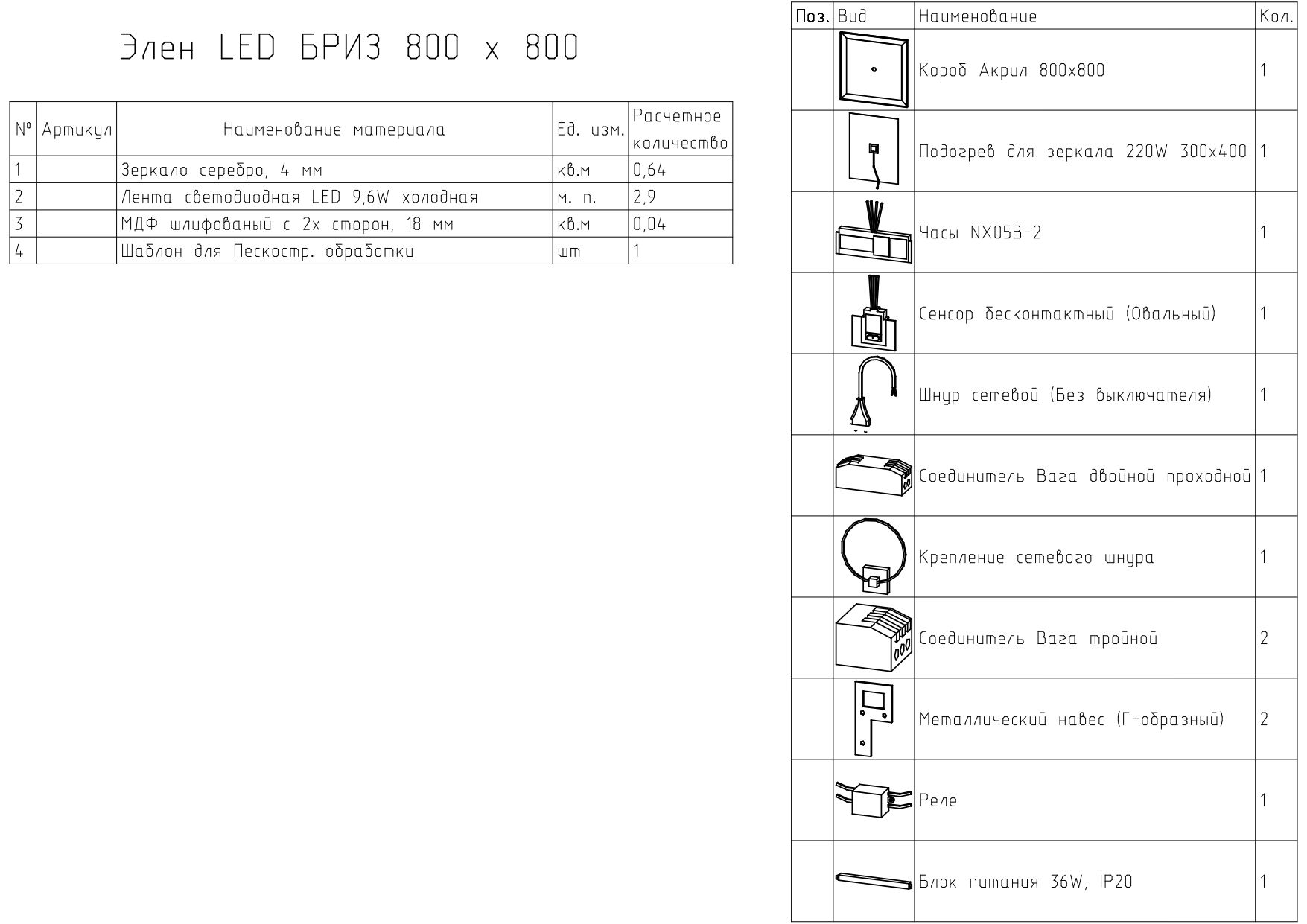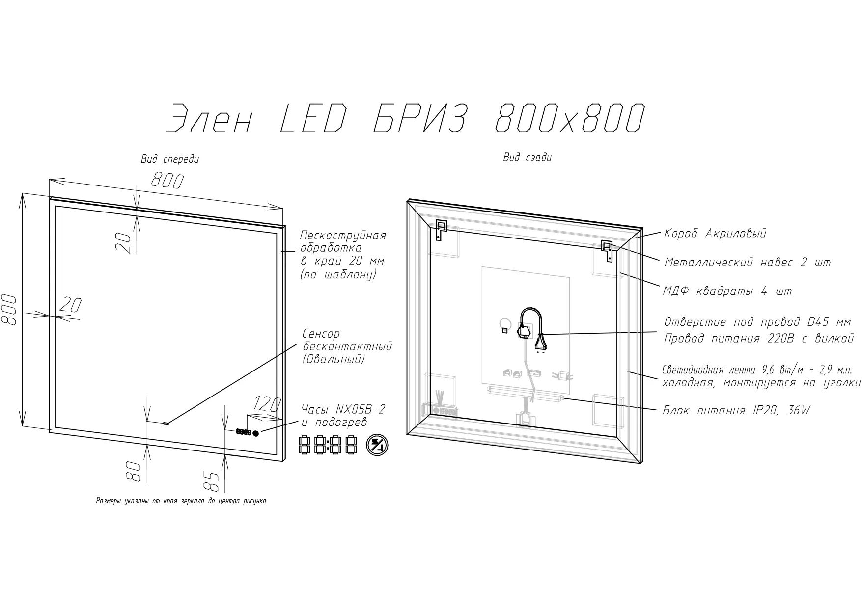 В комплект входят блок питания (36W) и сетевой шнур с креплением, что делает установку зеркала быстрой и простой.