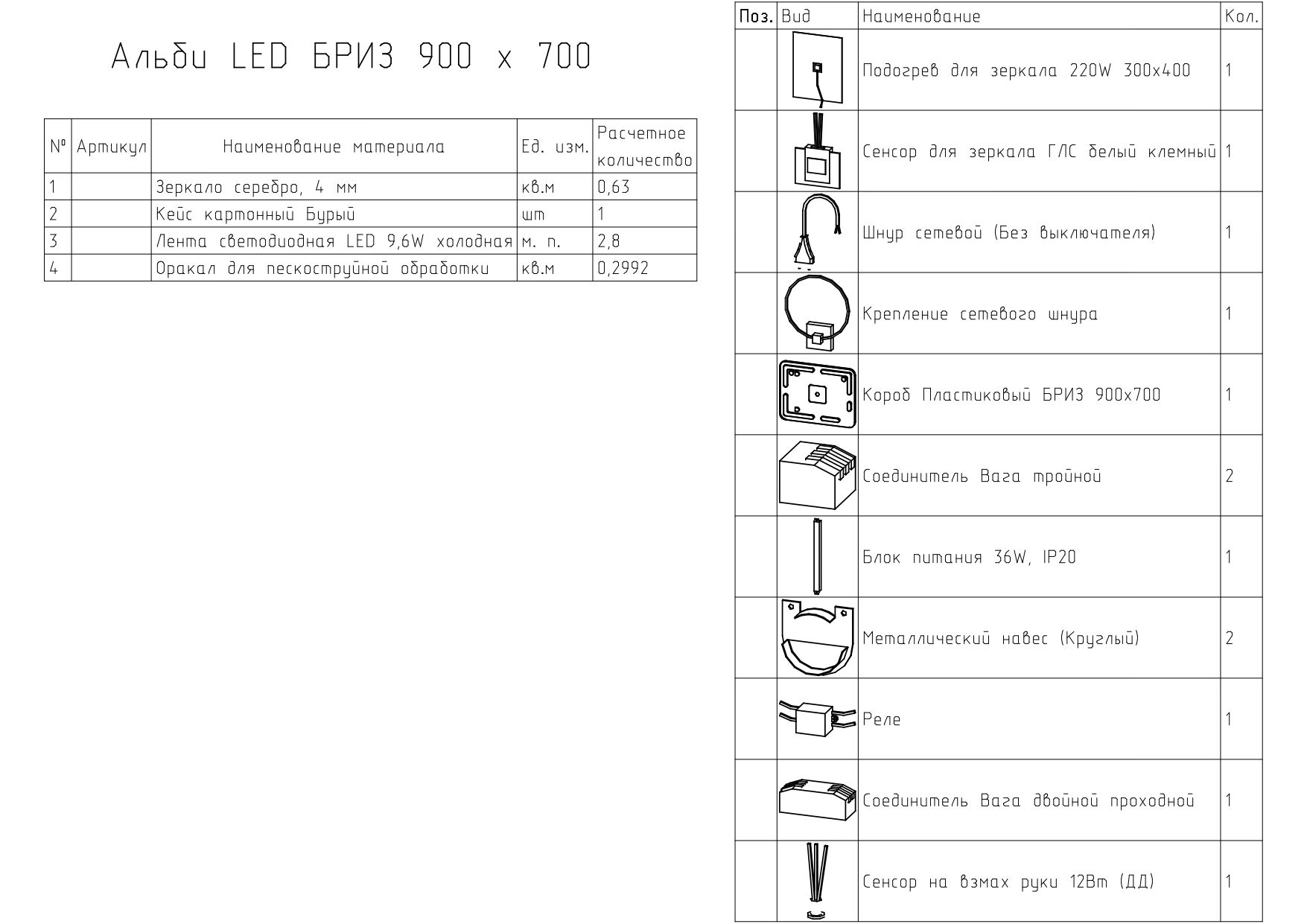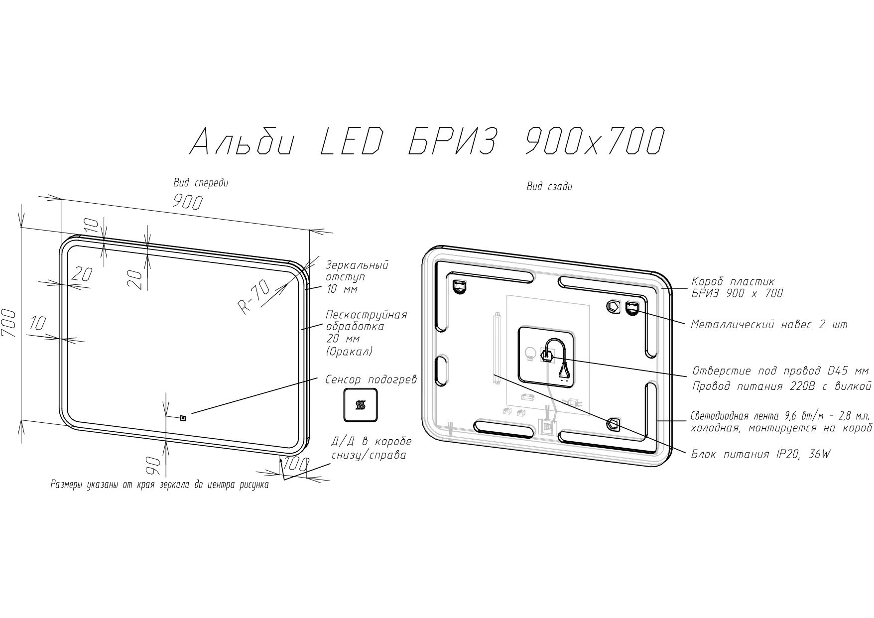 В комплект входят блок питания (36W) и сетевой шнур с креплением, что позволяет легко установить зеркало в вашем доме.