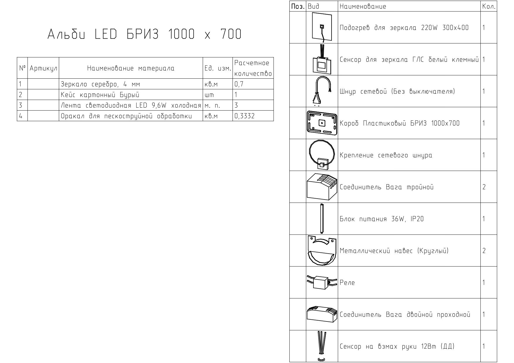 В комплект входят блок питания (36W) и сетевой шнур с креплением, что позволяет легко установить зеркало в вашем доме.