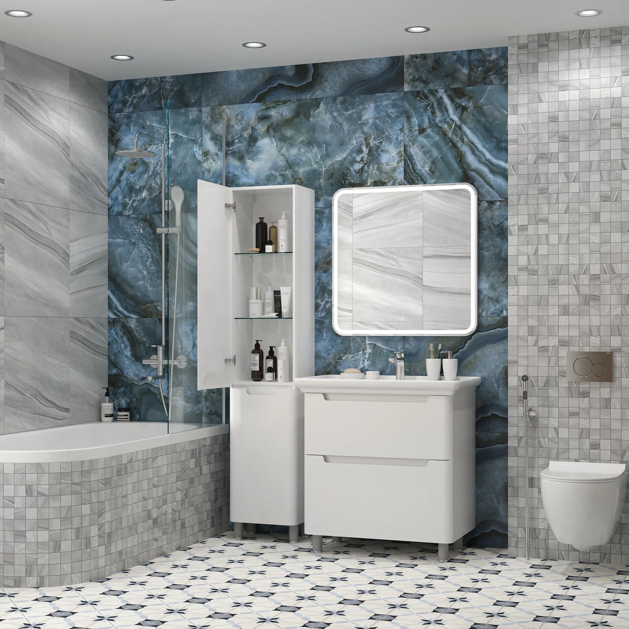 За распашной верхней дверцей вы найдете удобные полки, идеально подходящие для хранения косметики и других необходимых предметов. В нижней части шкафа расположена корзина для белья, что делает организацию пространства еще более удобной и функциональной. Особенностью данного пенала являются петли от компании Blum с механизмом доводчика, которые гарантируют плавное и бесшумное закрытие дверей, добавляя удобство в повседневном использовании.