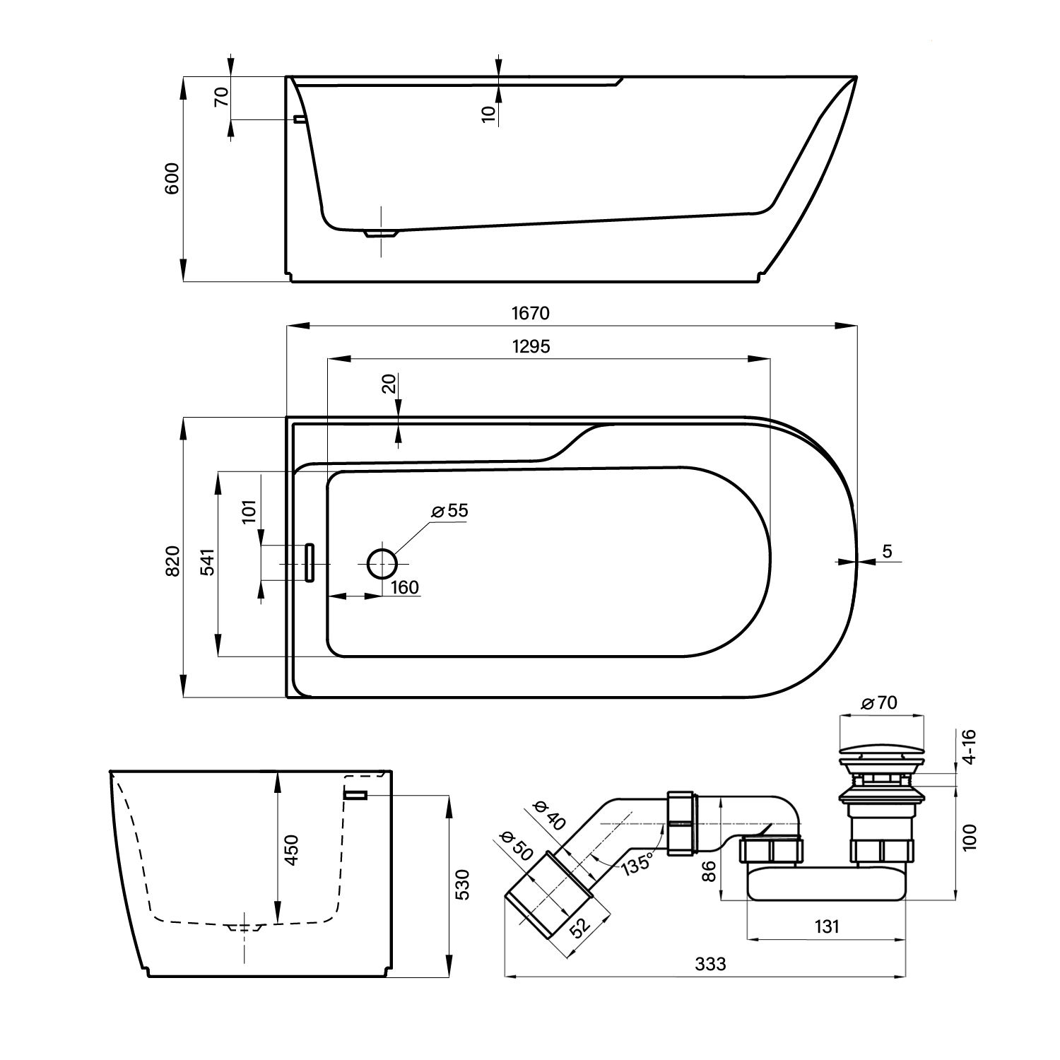 | Расположение перелива | Стандартное |