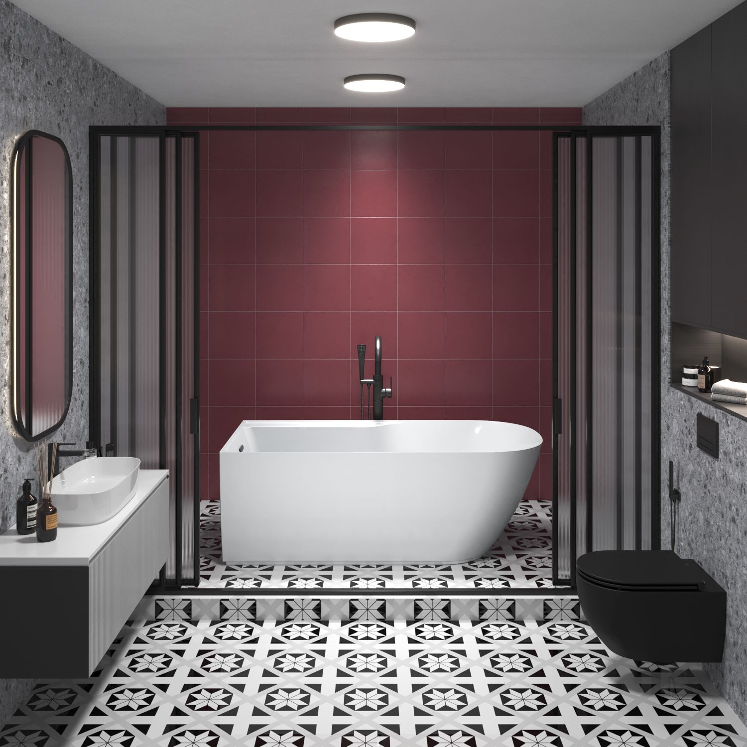 Набор 4 в 1: ванна 236201000, ножки, экран, слив-перелив матовый черный 231919000.