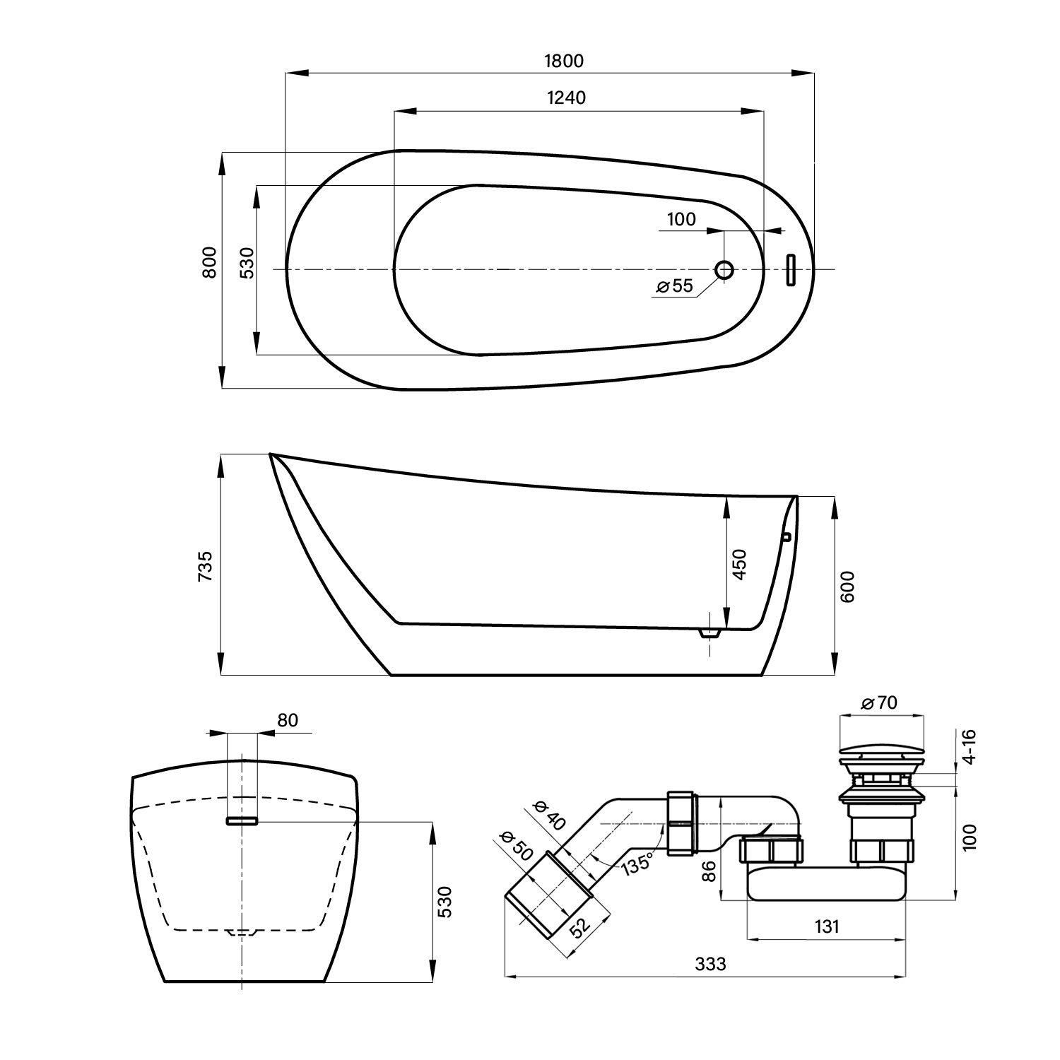 Акриловая ванна Wellsee Paradise Story 236602004 180×80 см цвет белый глянец отдельностоящая