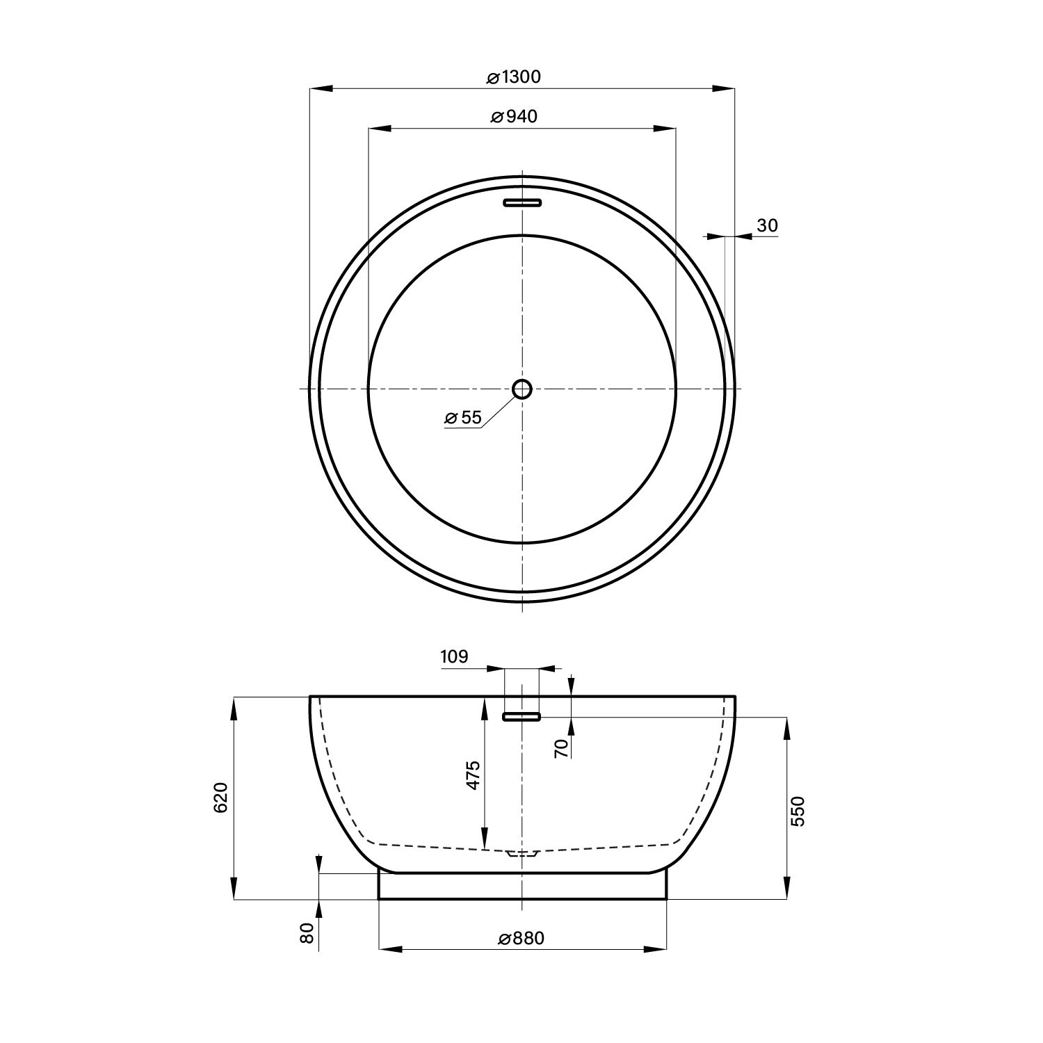 | Расположение перелива | По центру |