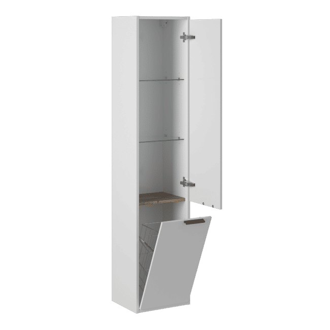 Шкаф-пенал для ванной BRIZ Сохо 35 не только украсит ваш интерьер, но и обеспечит порядок и комфорт в использовании. За верхней дверцей скрываются удобные полки, которые идеально подойдут для хранения косметики, полотенец и других необходимых предметов. В нижней части шкафа расположена практичная бельевая корзина, что делает организацию пространства ещё более удобной.