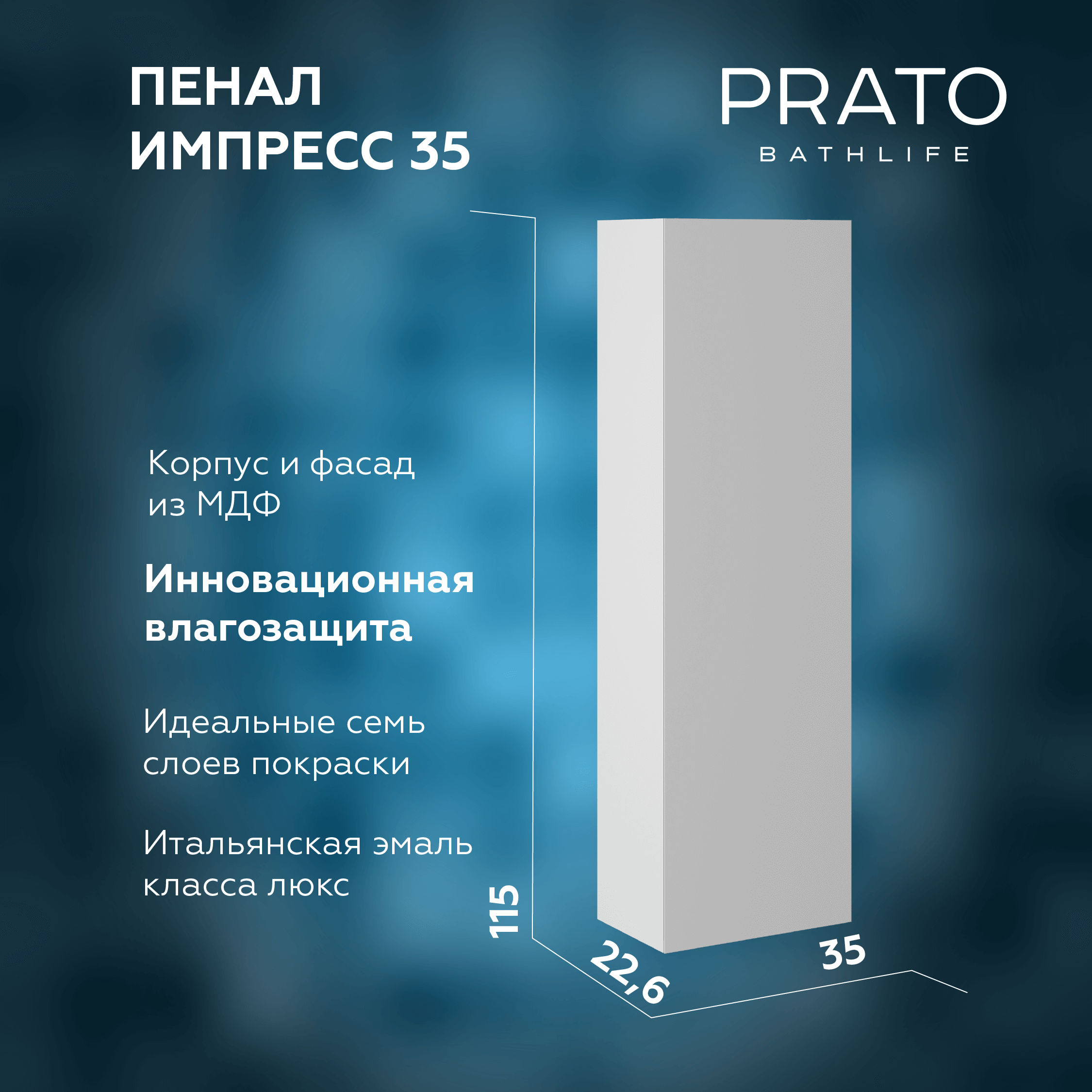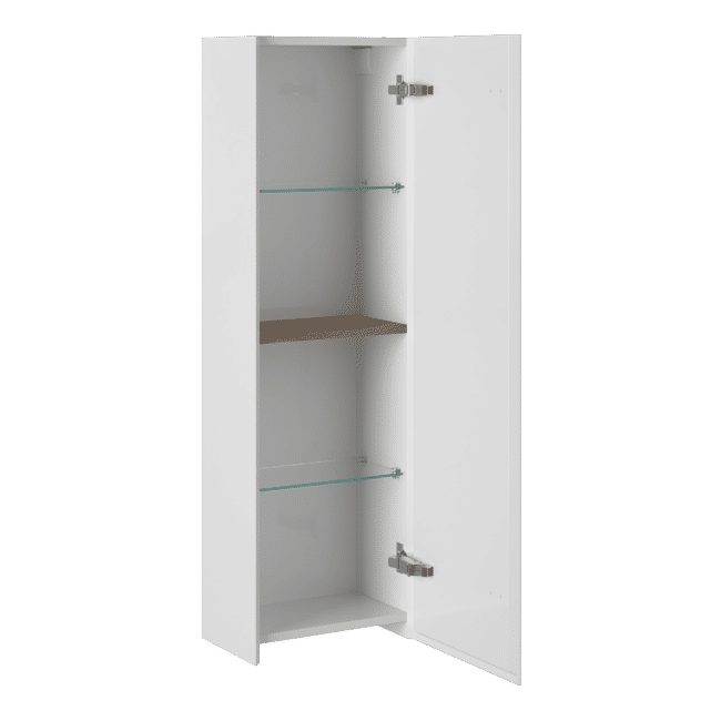 Шкаф-пенал для ванной BRIZ Импрэс 35 оснащен одной распашной дверцей, за которой скрываются полки из стекла и ЛДСП, идеально подходящие для хранения косметики, полотенец и других аксессуаров. Петли от известной австрийской компании Blum с механизмом доводчика гарантируют плавное и бесшумное закрытие дверцы, добавляя комфорт в каждодневное использование.