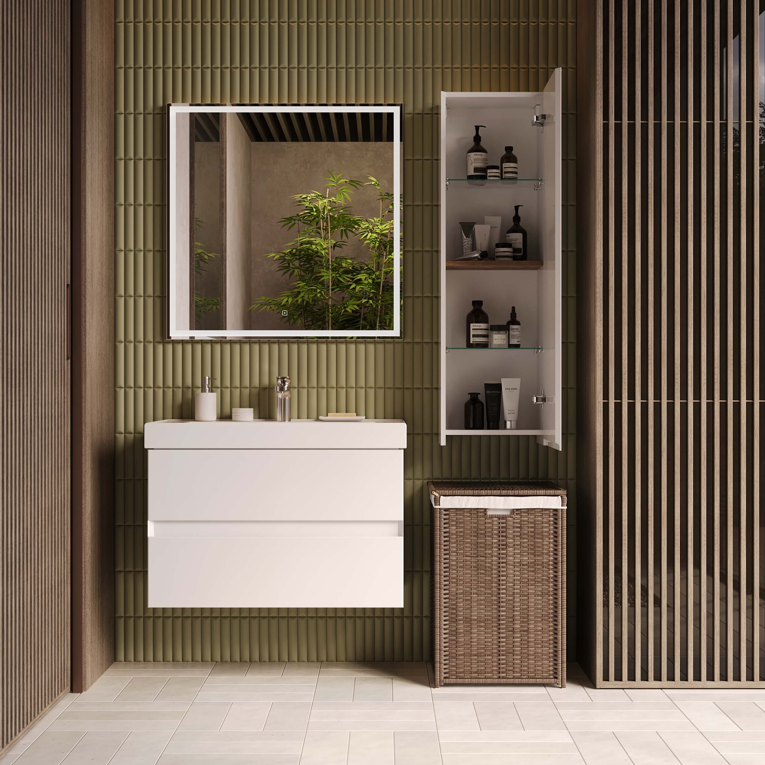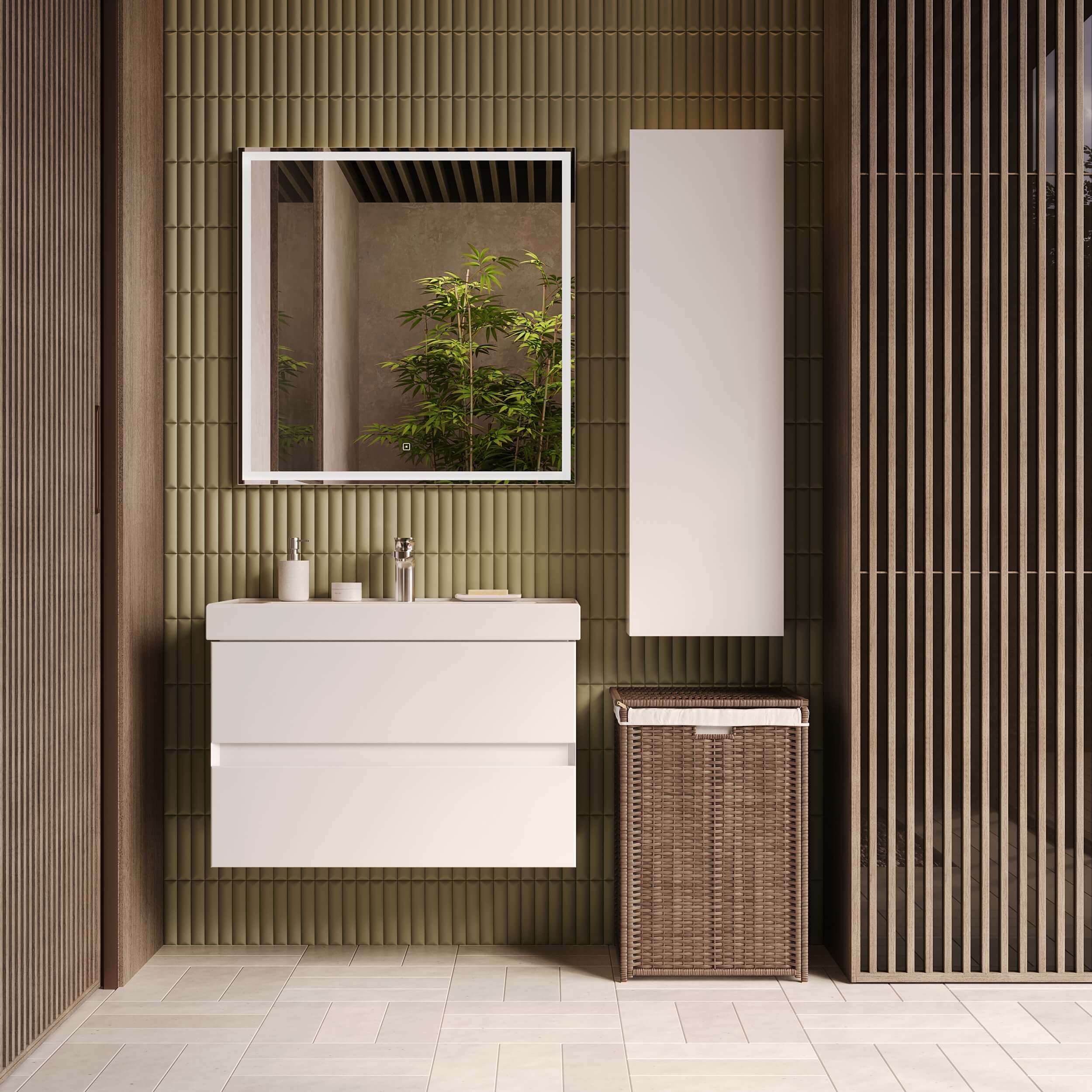 Подвесной монтаж шкафа позволяет сэкономить пространство на полу и придает вашей ванной комнате современный и легкий вид. Фасад выполнен из качественного МДФ с эмалевым покрытием, а каркас изготовлен из водостойкого ЛДСП, что обеспечивает долговечность и надежность.