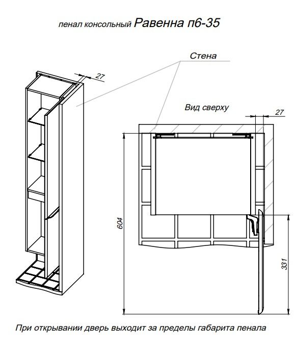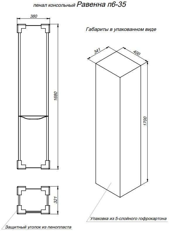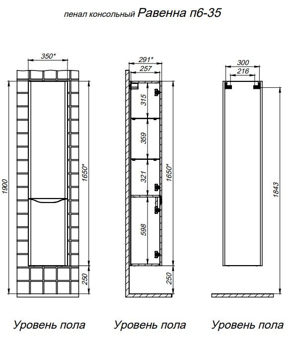 Шкаф-пенал для ванной BRIZ Равенна 35 правый / 250 04-00035-00 02 БЕЛ