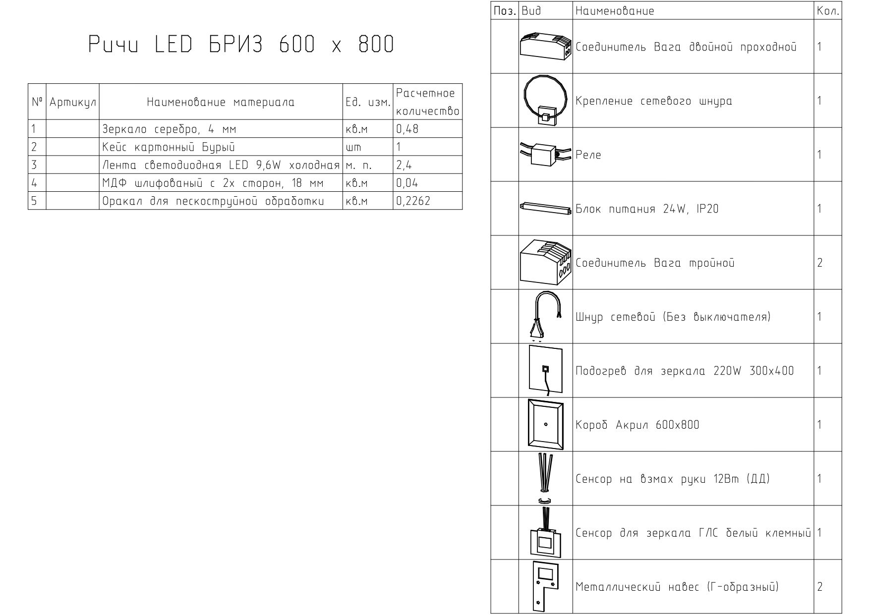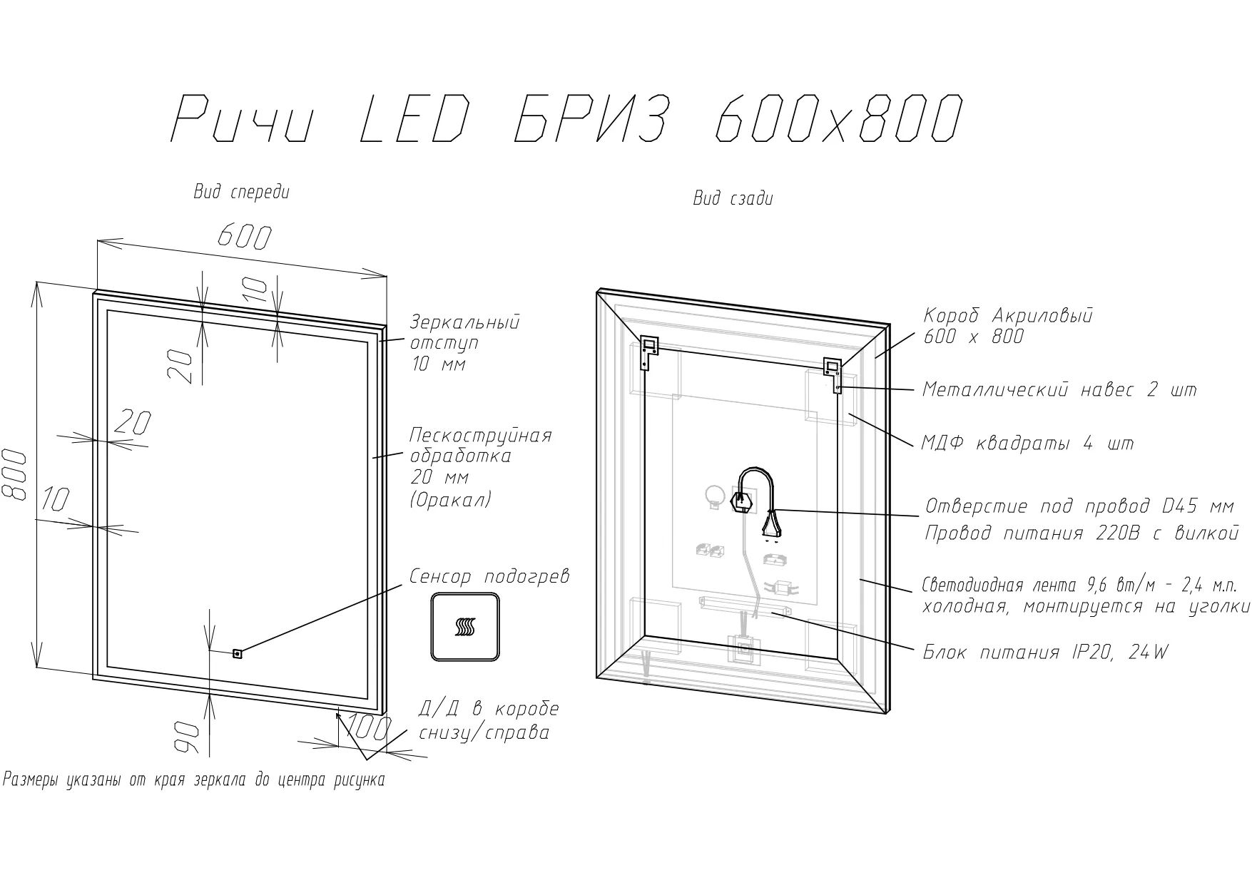 Зеркало BRIZ Риччи 60×80 с подсветкой и подогревом / 360 01-44060-00 00