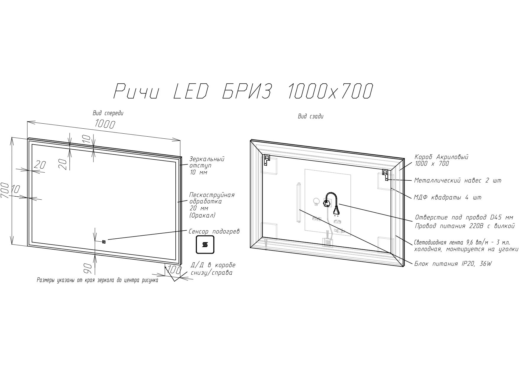 Зеркало BRIZ Риччи 100×70 с подсветкой и подогревом / 360 01-44100-00 00