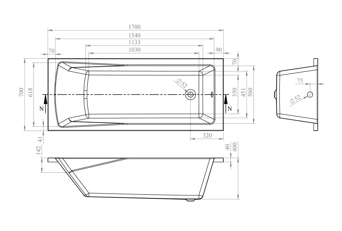 Акриловая ванна Lavinia Boho One 37010070 / 170×70 см