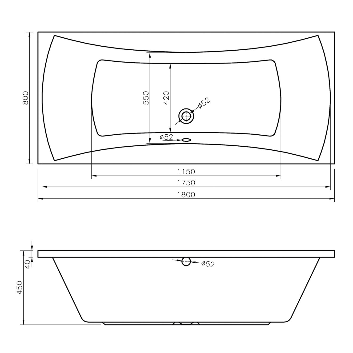 | Расположение перелива | По центру |