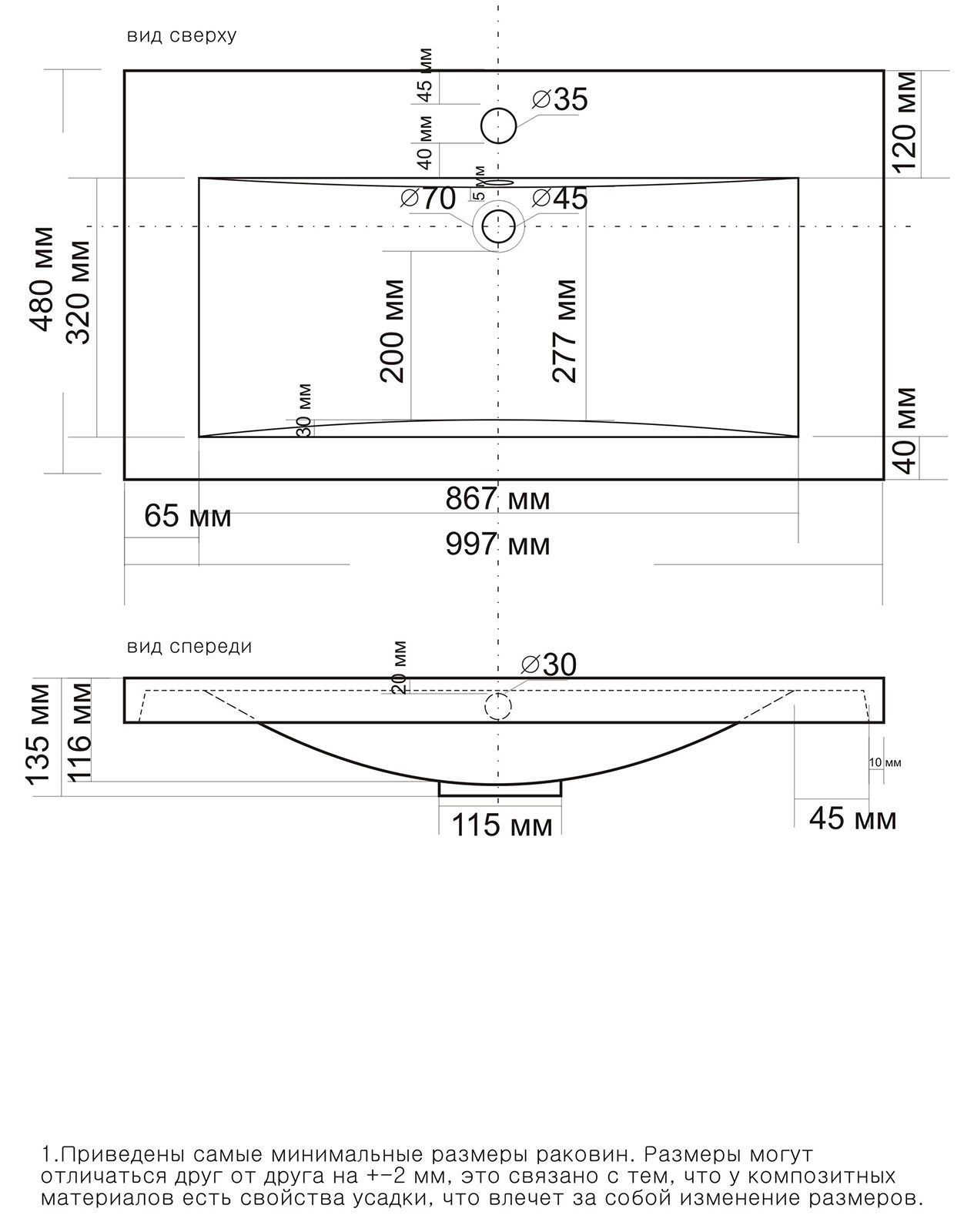 | Готовые отверстия под смеситель | 1 |