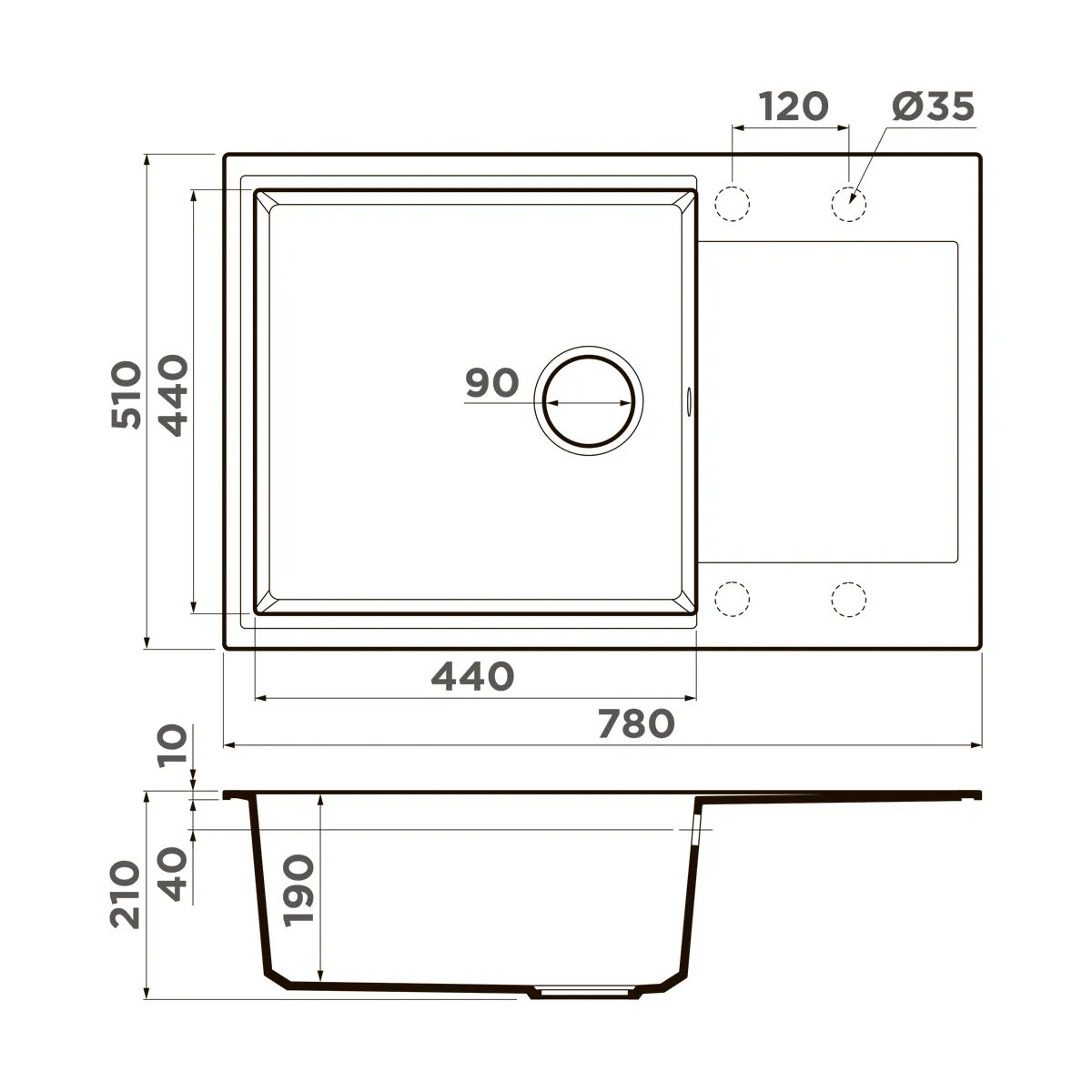 | Толщина материала мойки, мм | 10 |