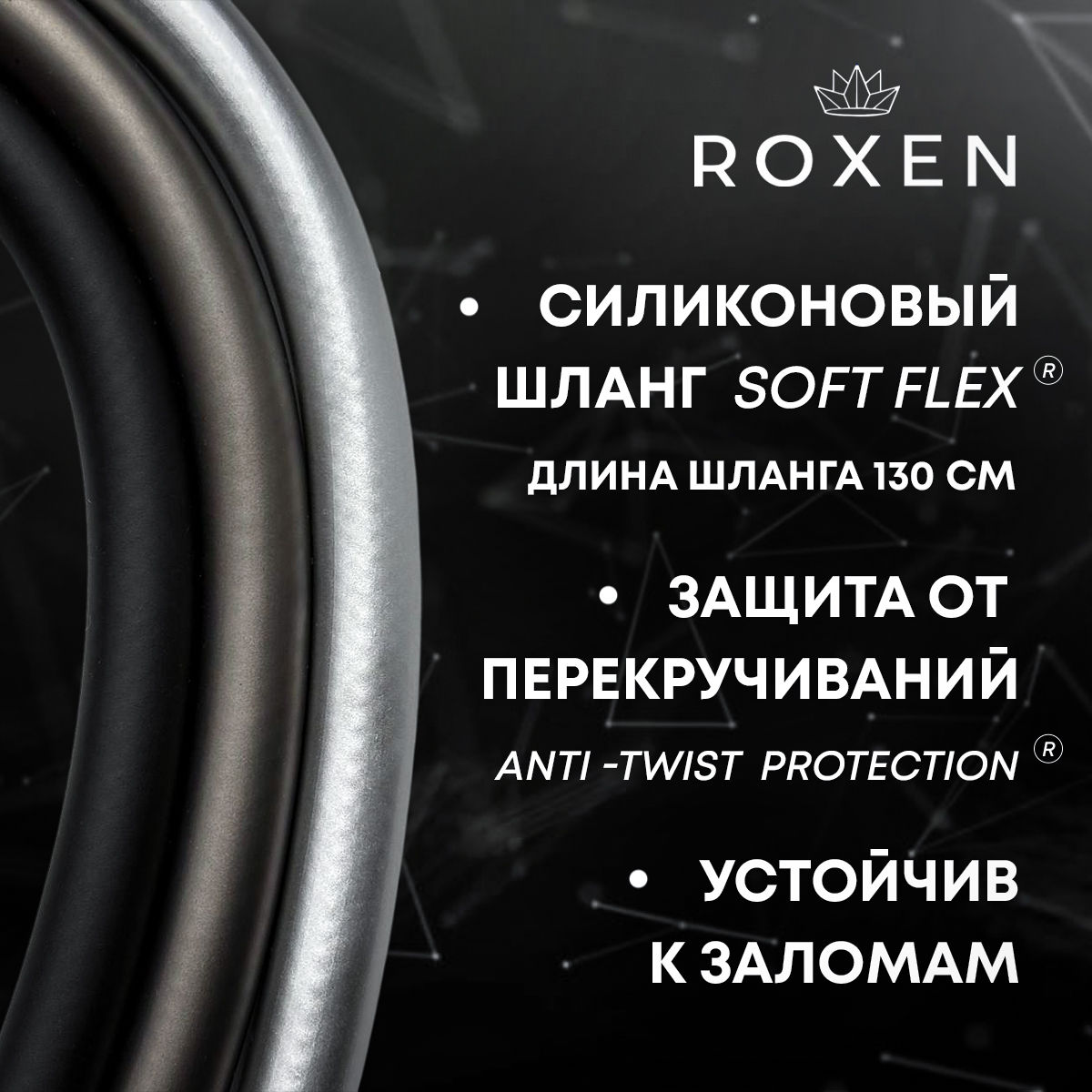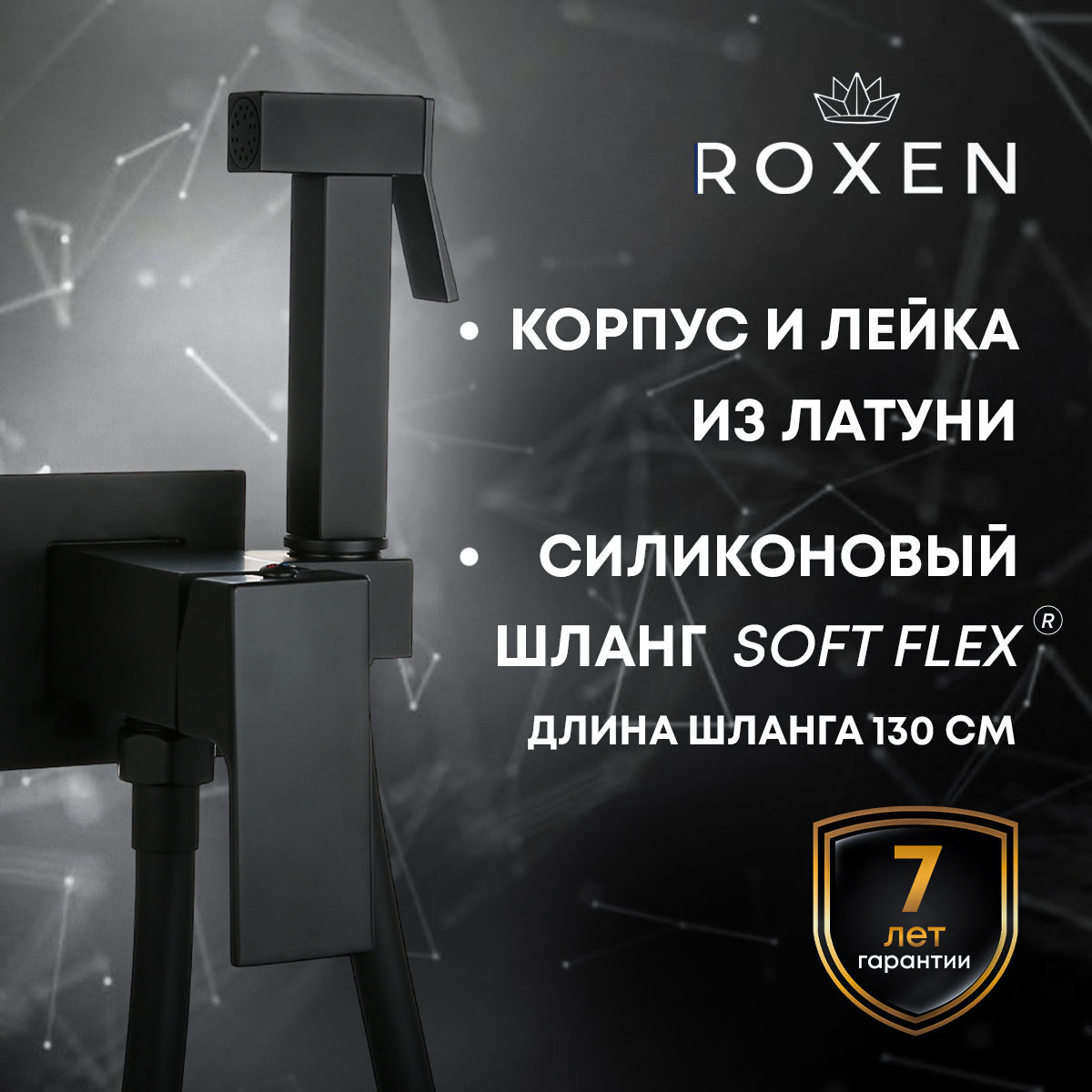 Смеситель встраиваемый Roxen Caspia 500960-B с гигиеническим душем — это стильная удобная модель в черном матовом цвете. Корпус смесителя изготовлен из высококачественной латуни марки MS-65, без содержания свинца и других вредных примесей. Смеситель имеет специальное покрытие, препятствующее образованию известковых отложений, что поможет избежать поломок и обеспечит более продолжительный срок эксплуатации изделия. Надежный керамический картридж устойчив к высоким температурам, имеет плавную регулировку напора и температуры воды. Износостойкий шток рассчитан на 500000 циклов. Смеситель имеет систему шумоподавления, которая обеспечивает бесшумную работу на протяжении всего срока использования. Прочное и износостойкое матовое покрытие устойчиво к механическим воздействиям и истиранию, практически не оставляет на себе следы от пальцев и капель воды. Силиконовый шланг с инновационной поверхностью Soft Flex имеет специальную защиту от заломов и перекручивания Anti-twist protection. Такой шланг не оставляет царапин и повреждений на сантехнике, полностью герметичен и надежен в использовании, благодаря гладкой поверхности прост в уходе.
