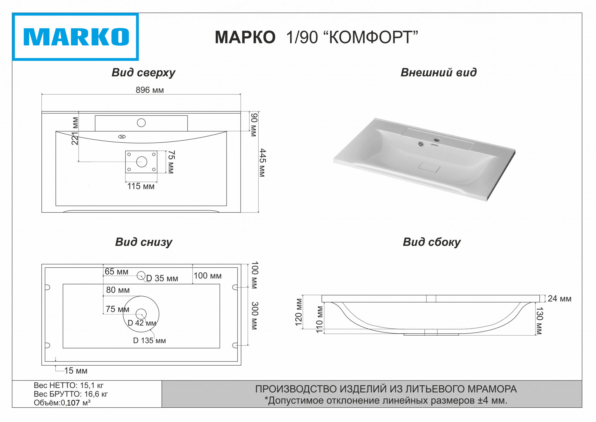 Раковина Misty Комфорт 90 см / 5224900