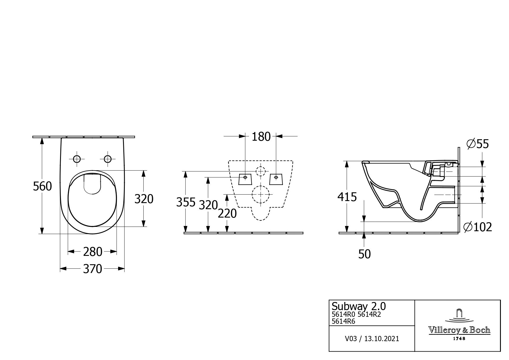Подвесной унитаз Villeroy&Boch Subway 2.0 5614R001 37x56,5 безободковый