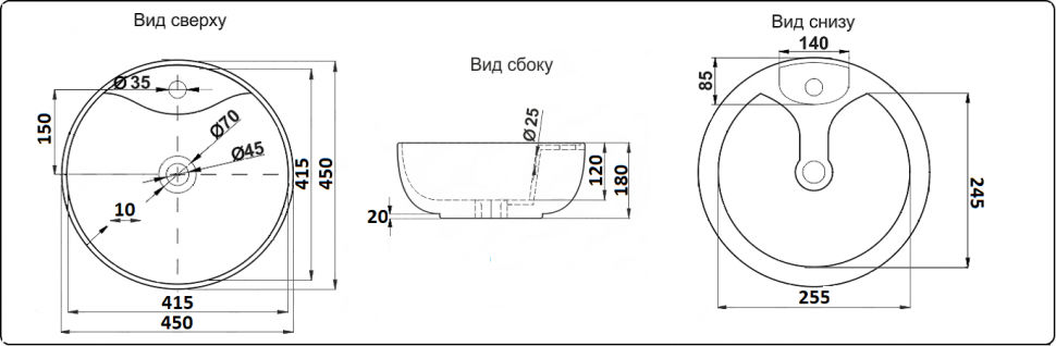 | Вид раковины | Накладная |