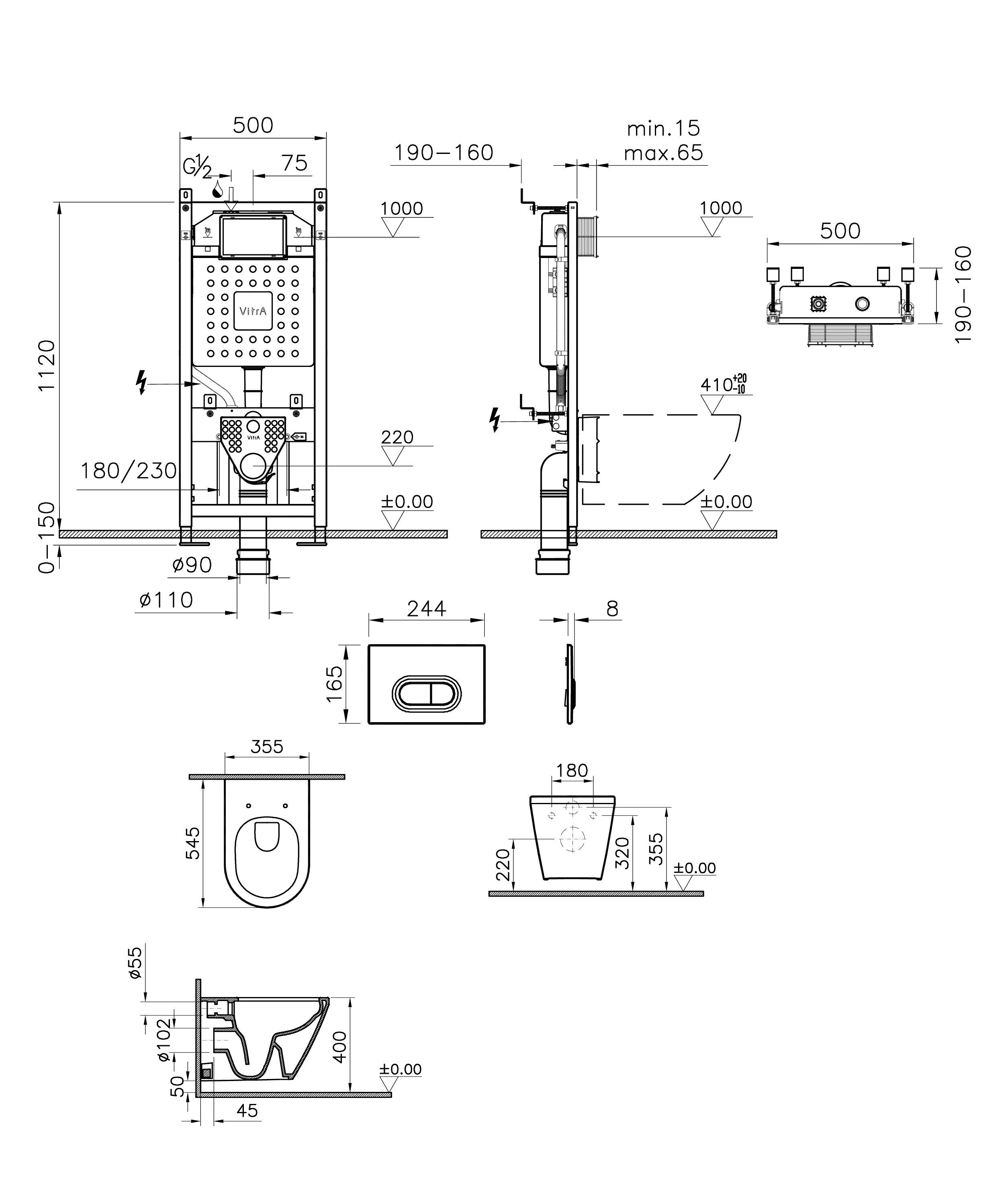 Унитаз подвесной с инсталляцией Vitra Integra Round 9004B003-7202 4 в 1 с сиденье Soft-Close