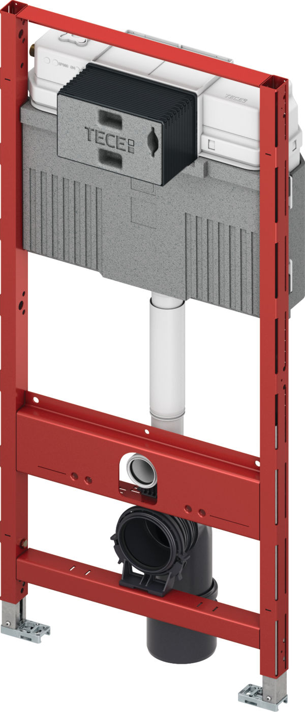 Инсталляция TECE 9300430 оборудована инновационной изоляцией от конденсата, бесшумным наполнительным клапаном (акустическая группа 1 по DIN 4109) и возможностью регулировки давления смывной воды без демонтажа сливного клапана.
