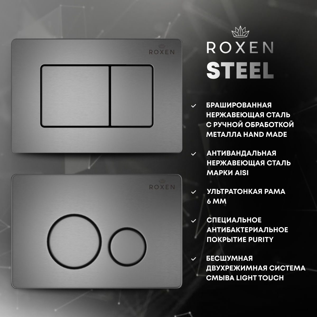 Унитаз подвесной с инсталляцией Roxen StounFix Dual Fresh 968390 6 в 1 (состоит из: 710200, Steel 420260G, Roxen Antares)