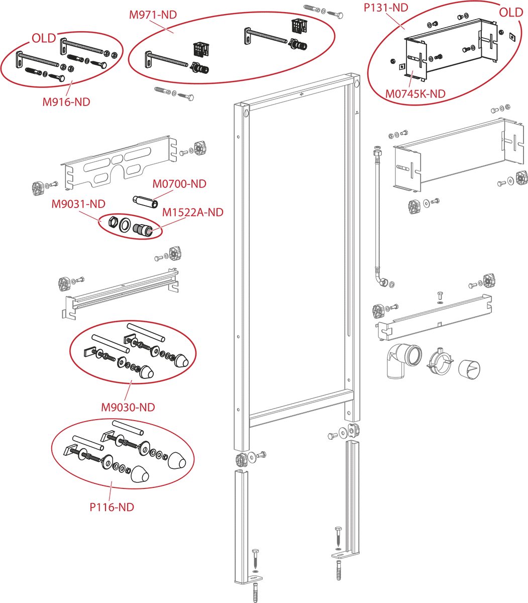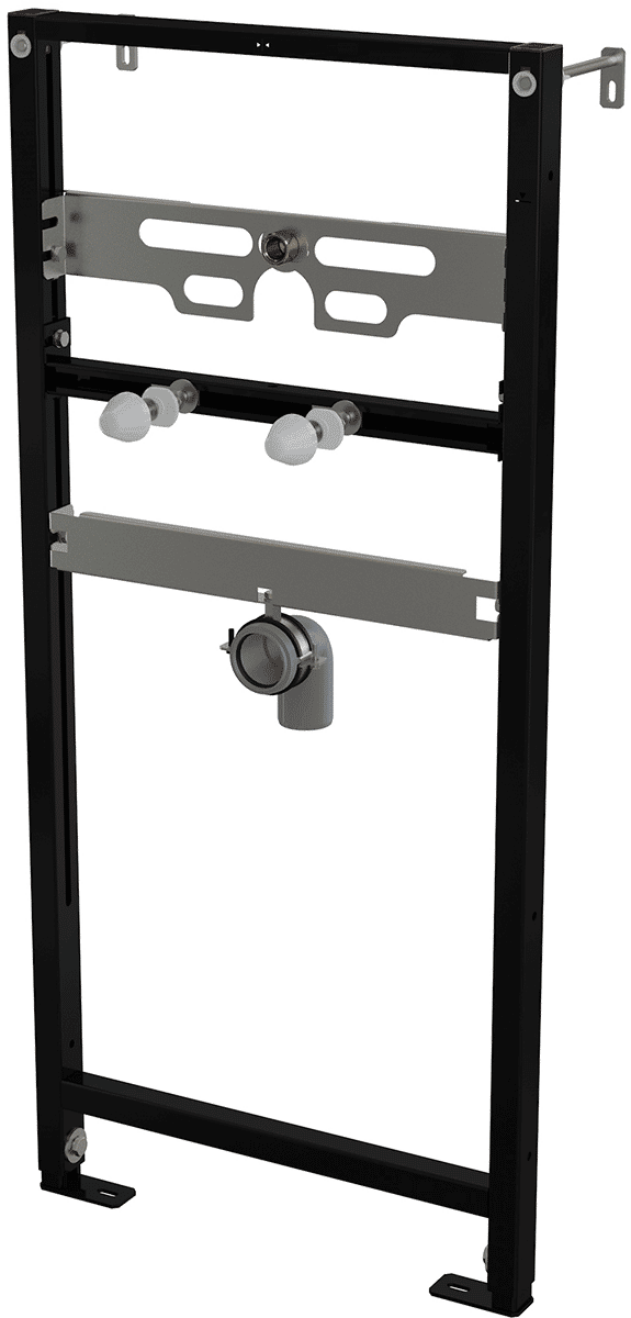 В комплекте: самонесущая рама, монтажный комплект (винт Ø8×60 – 4 шт., дюбель Ø12 – 4 шт.), монтажный комплект для крепления писсуара (болт M10 – 2 шт.), колпаки для закрытия гаек, резьбовое соединение для подключения воды (G1/2"–G1/2").