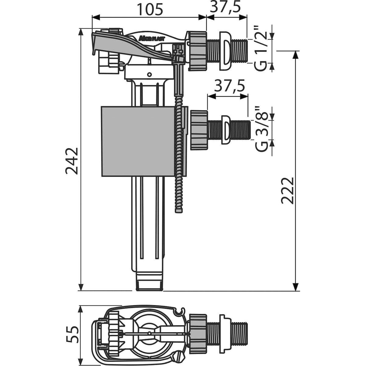 Впускной механизм с боковой подводкой AlcaDrain (AlcaPlast) A160UNI — это универсальный клапан, идеально подходящий для пластиковых и керамических промывочных баков. Он предназначен для замены существующего механизма похожего назначения, обеспечивая надежное и быстрое заполнение. Установка осуществляется на боковой стороне бачка, что делает его отличным выбором для скрытых систем инсталляции.