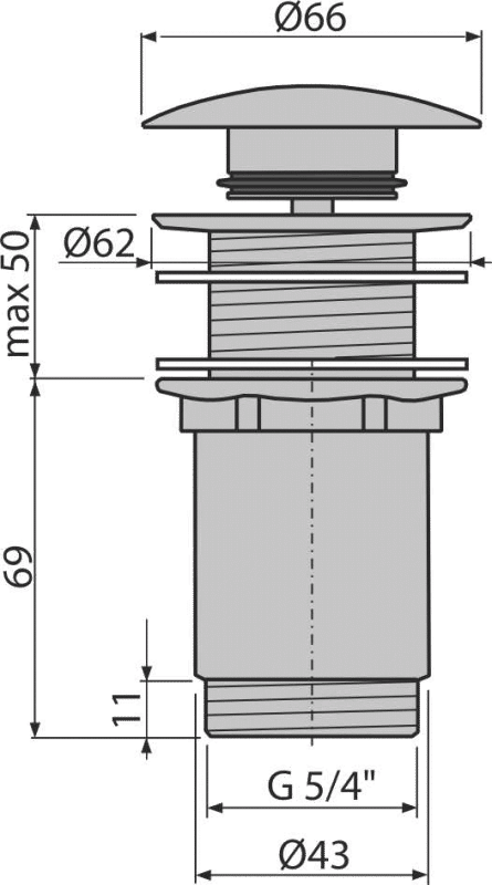 Донный клапан AlcaDrain (AlcaPlast) A395 для умывальника click-clack 5/4" цельнометаллический с большой заглушкой без перелива для пластиковых и стеклянных умывальников