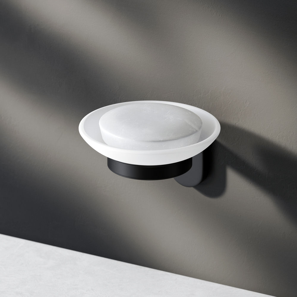 Мыльница с настенным держателем в глубоком черном цвете из коллекции X-Joy чтобы самое необходимое всегда было под рукой. Идеально впишется в современную ванную комнату и будет радовать глаз каждый день. Матовое стекло отличается прочностью и легкостью в уборке. Держатель плотно прилегает к стене и не расшатывается за счет специального шурупного крепления. Уплотнительный элемент между стеклянной мыльницей и ее держателем надежно фиксирует приспособление. Выполнена в современном дизайне легко комбинируется с другими продуктами бренда.