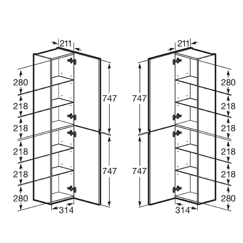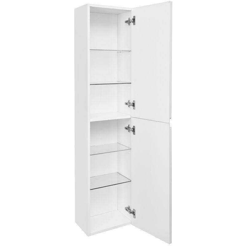 Удобные фасады открываются с помощью стильной профильной ручки, а петли Hettich с системой плавного закрывания гарантируют мягкое и бесшумное закрытие дверей. Внутри расположены регулируемые по высоте полочки из просветленного стекла — идеальное решение для аккуратного и гибкого хранения ваших косметических средств и аксессуаров.