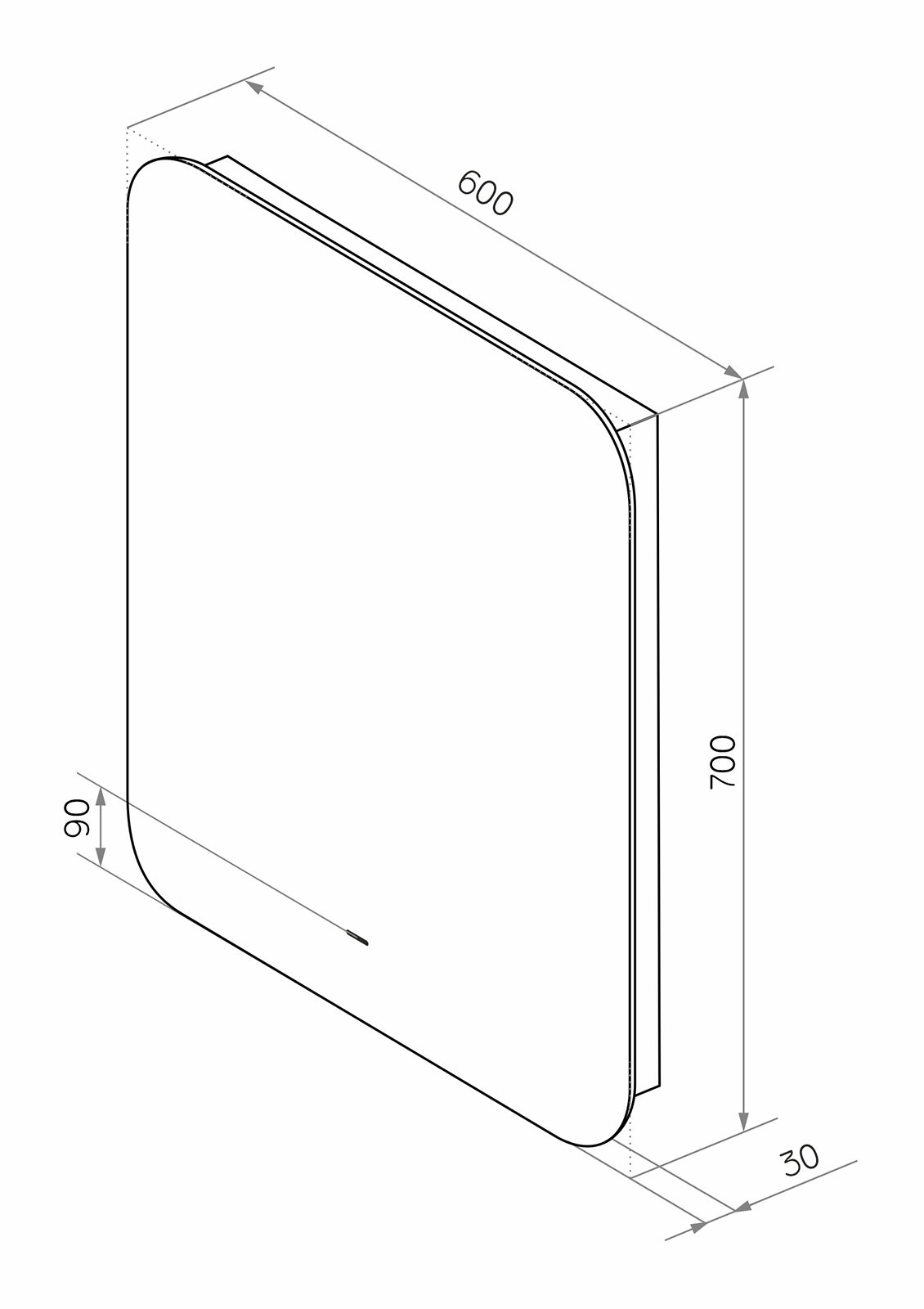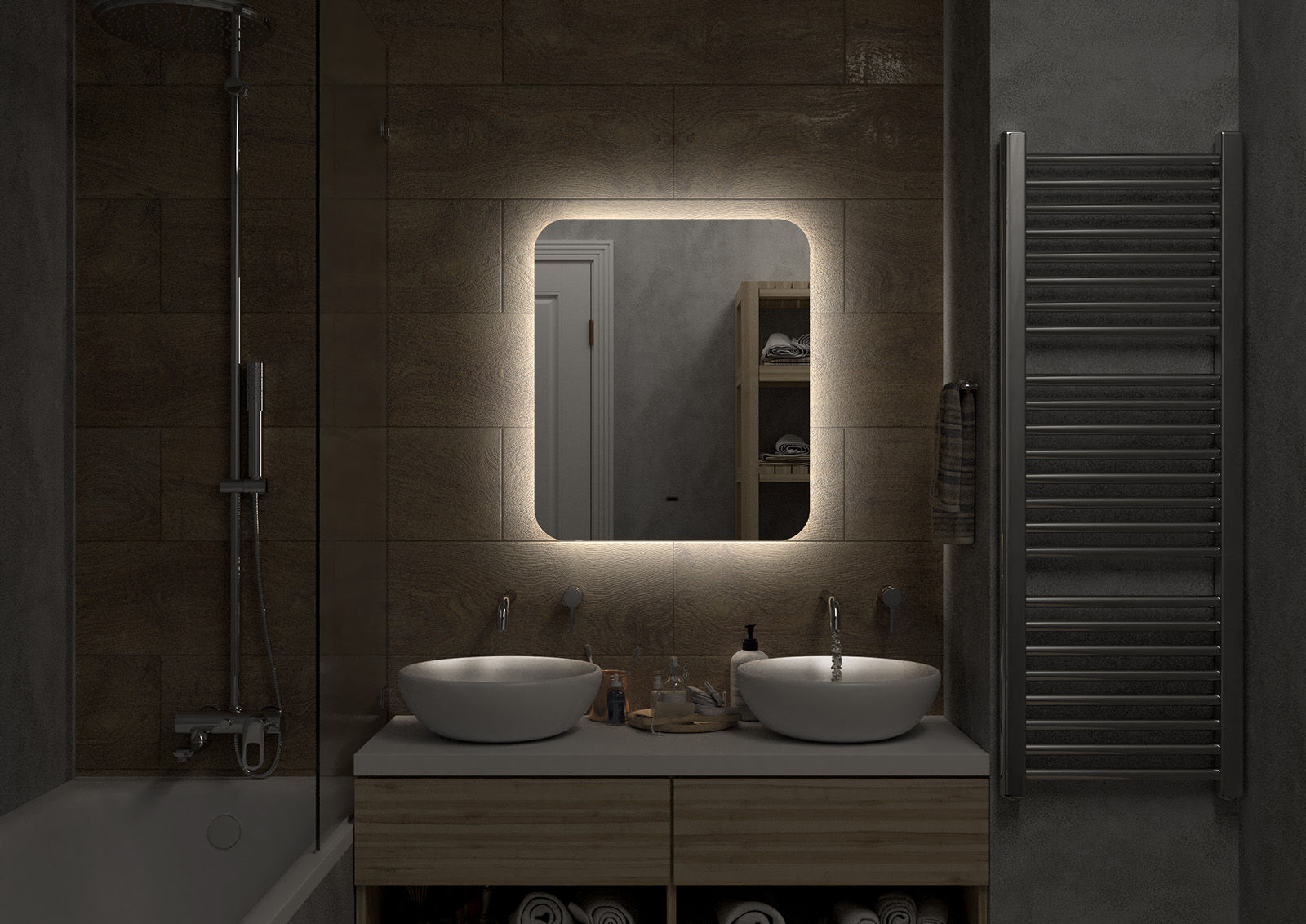 Зеркало прямоугольной формы в безрамочном исполнении. Отличительная особенность — так называемая «ореольная» подсветка, которая создает визуальную иллюзию парящего в пространстве зеркала. Модель выполнена в лаконичном дизайне без декоративных орнаментов, кнопок включения и других элементов. Благодаря бесконтактному сенсору пользователь может управлять подсветкой взмахом руки. Есть возможность настройки яркости свечения, а также присутствует функция антизапотевания зеркала.