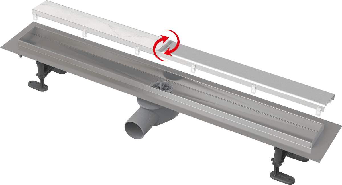 Изготовленный из нержавеющей стали AISI 304 с толщиной 1,5 мм, обработанной методом травления и пассивации, он гарантирует долговечность и устойчивость к коррозии. Уклон внутренней части желоба обеспечивает эффективный отвод воды, а высота монтажа всего 81 мм с возможностью регулировки по высоте делает установку простой и удобной.