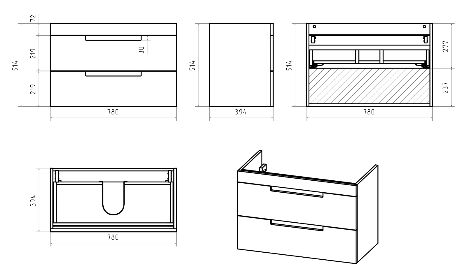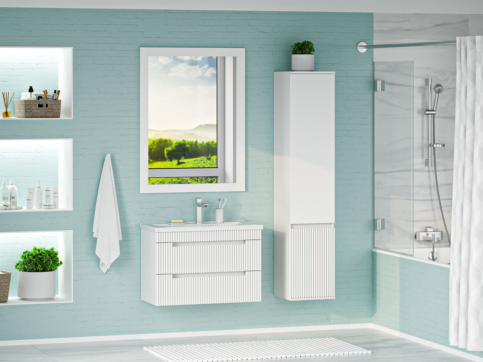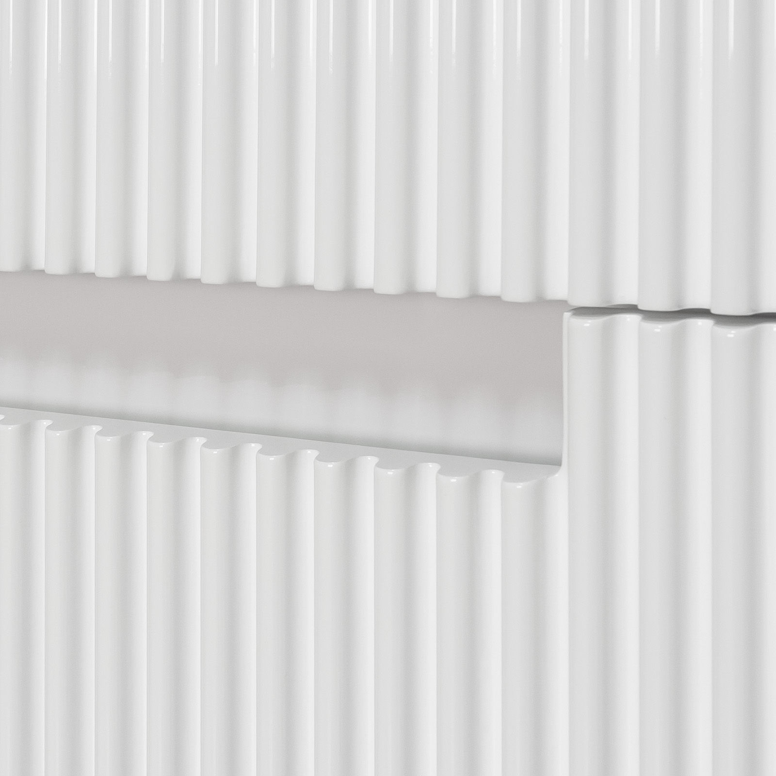 Тумба крепится на стену и украшена фрезеровкой на фасадах, что придает мебели стильный и оригинальный вид. Отличительная особенность коллекции: отсутствие внешней фурнитуры. Ящики открываются благодаря удобной ручке-пазу.