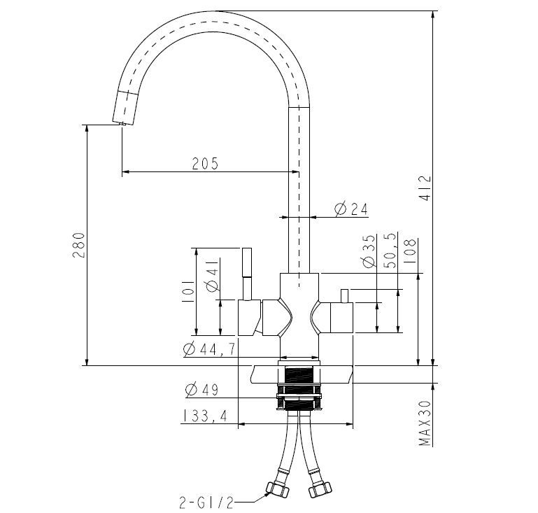 | Высота излива, см | 28 |