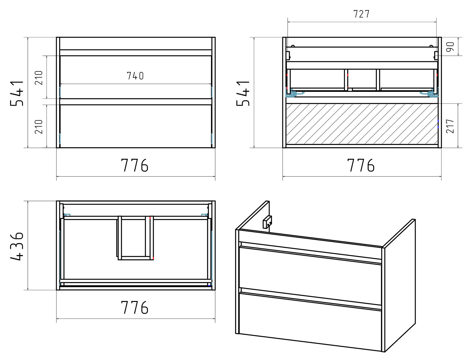 Тумба под раковину Brevita Balaton 80 подвесная с 2 ящ. / BAL-06080-01-01П2Я белый